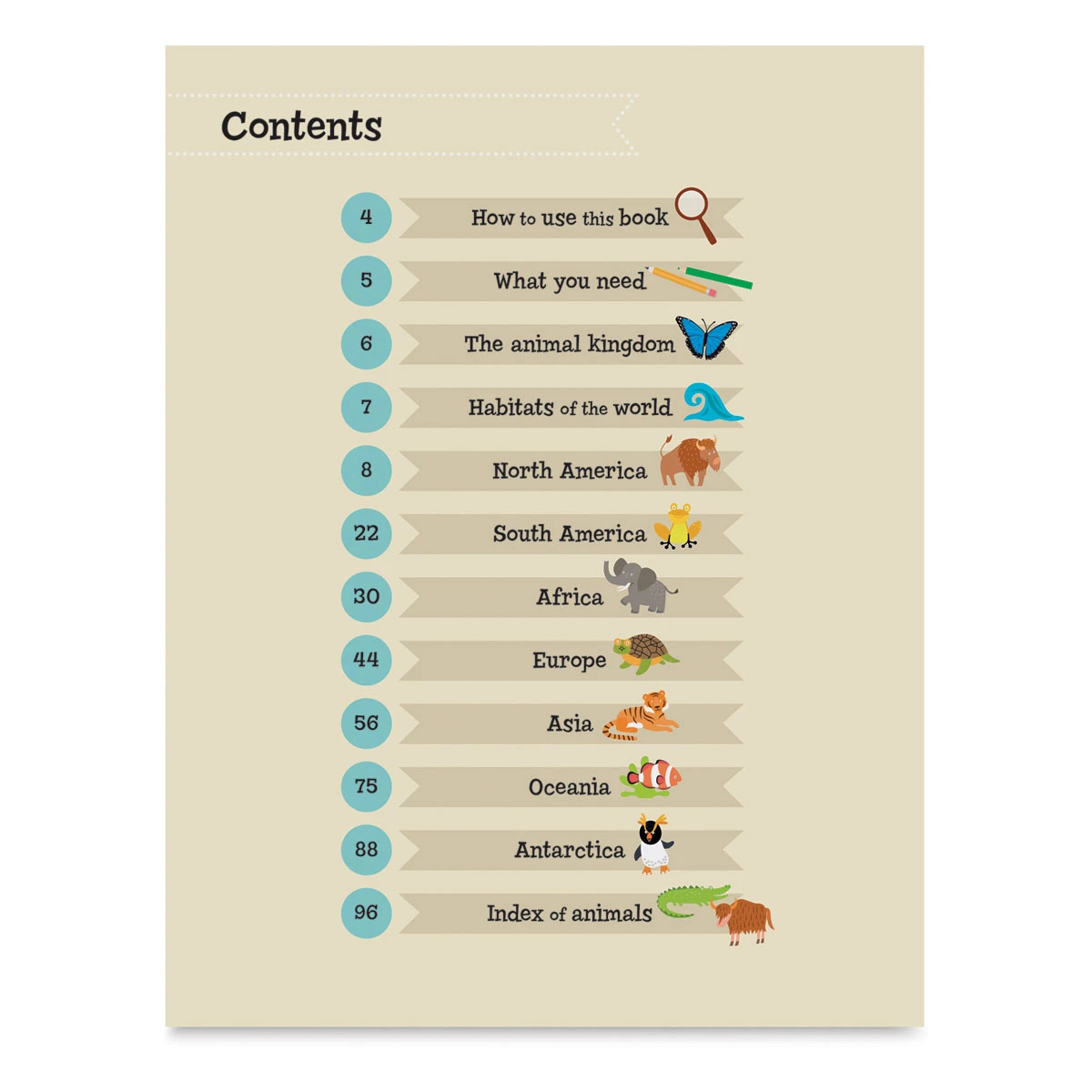 Kids learn how to draw more than 175 animals from around the world with the A World of Animals activity book. The art is done in a cute, contemporary style that’s geared toward beginning young artists. In addition to the step-by-step instructions, this book contains fascinating animal facts that e…