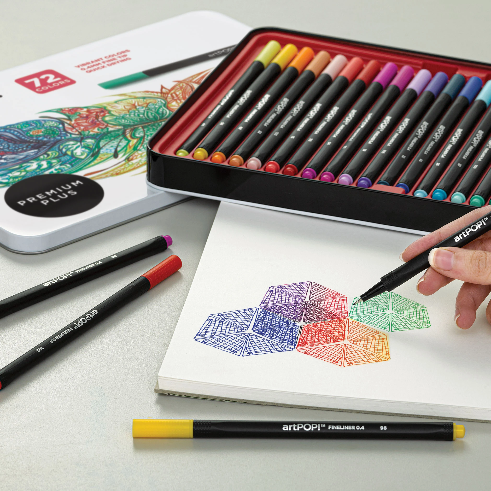 artPOP! Fineliner Pen Sets are ideal for adding colorful details to drawings and illustrations, journaling, letter writing, or even just doodling. Quick-drying and smudge-resistant, these Premium Plus pens feature waterbased ink. Long-wearing 0.4 mm fine tips are encased in metal to keep ink from tr…