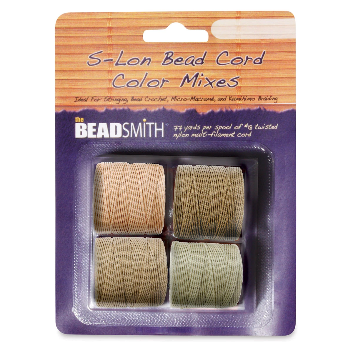 Beadsmith S-Lon Cord Packs are perfect for macramé, stringing beads, and kumihimo projects. These packs include 0.5 mm 3-ply twisted, bonded nylon cord in four colors. Each spool contains 77 yds.