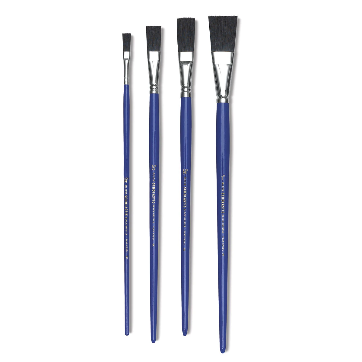 These well-crafted, versatile multi-purpose brushes work wonders with oil, acrylic or tempera paints. Their hair is 100% black bristle — a good alternative to quality softer hair. The natural wooden handles have seamless, polished, nickel-plated brass ferrules.