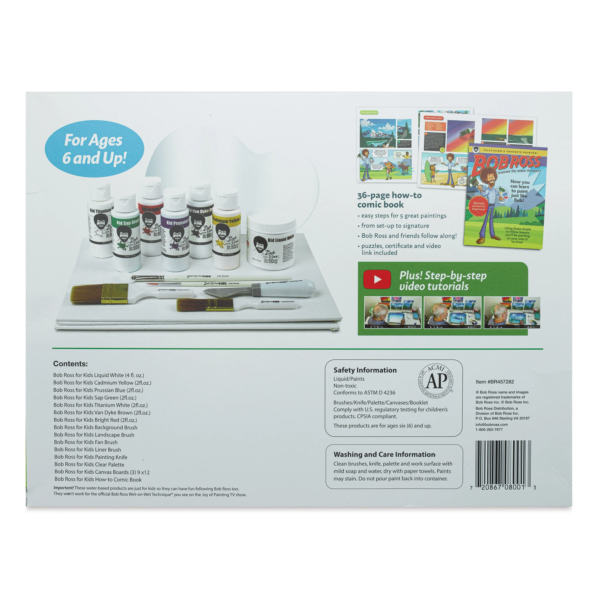 Introduce kids to the joy of painting with Bob Ross for Kids Happy Lessons in a Box. Featuring all the tools they need to create five paintings from set-up to signing, this fun kit gives kids simple yet real painting skills they’ll use for life. Each kit includes six waterbased colors and a basecoat…