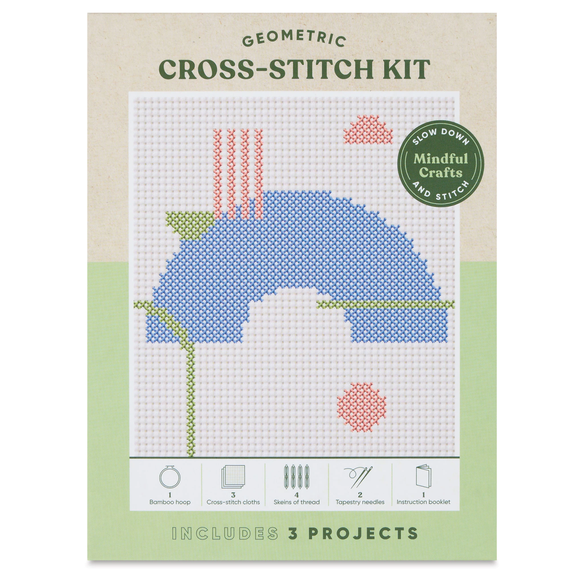 Discover a new hobby and inner peace with Mindful Crafts Cross Stitch Kits. These kits have everything you need to create three cross stitch projects that will help you relax and unwind and focus on the present. Great for crafters of any age and skill level.