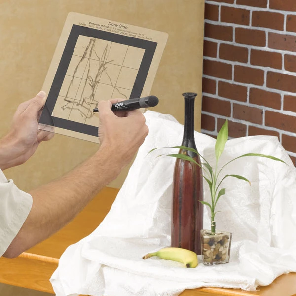 Solve any composition or perspective problem instantly! Using a dry erase marker (not included), sketch your composition directly on the grid, then use it to transfer your sketch to canvas or pad.
