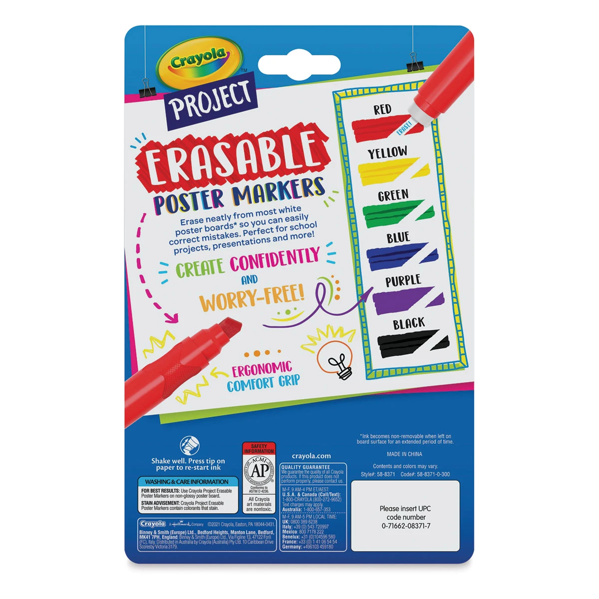 Use Crayola Project Erasable Poster Markers for school assignments and other creative projects. They erase neatly from white poster board and heavy cardstock, so you can create special effects and eliminate mistakes. These markers have a chisel nib tip for creating thick or thin lines, and they’re d…