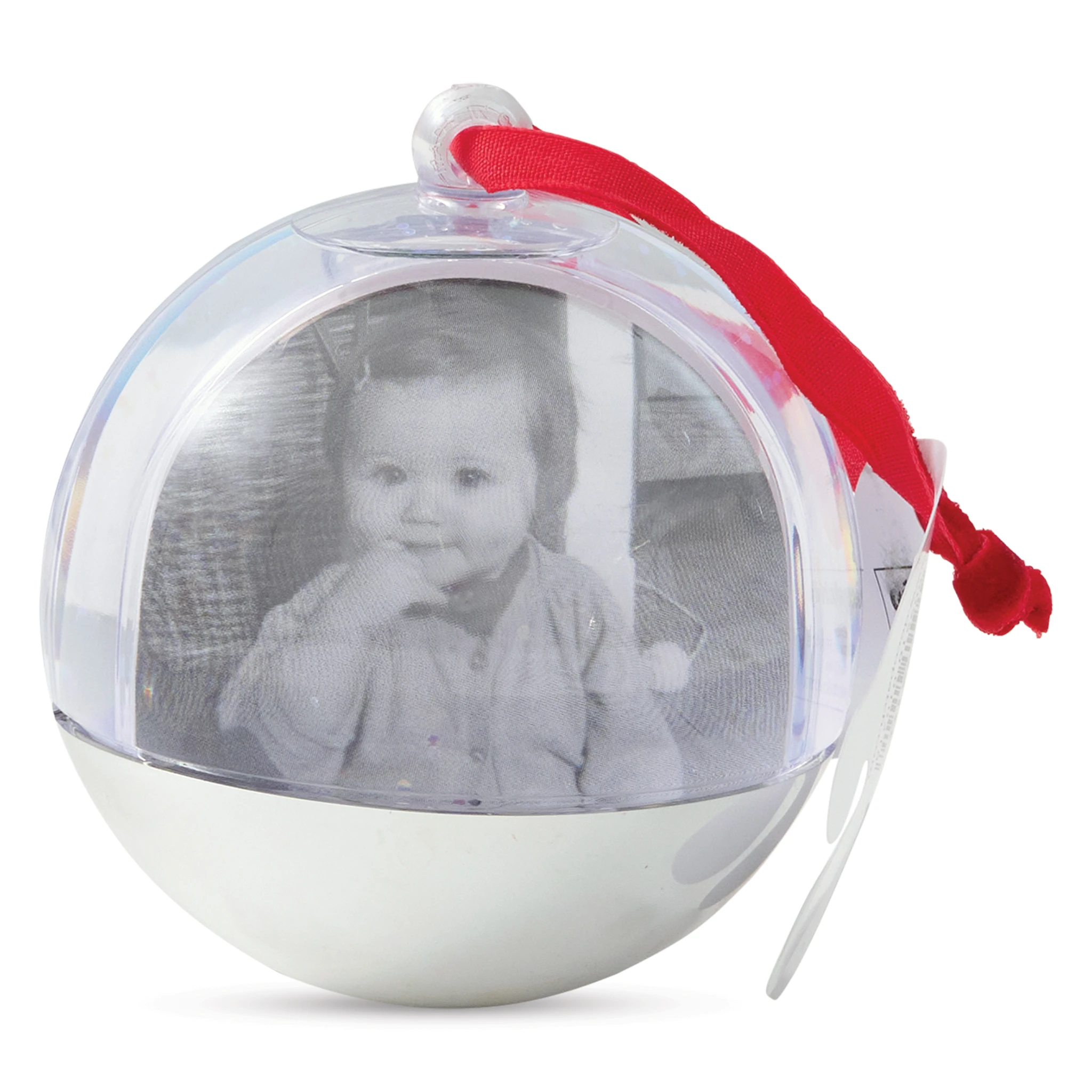 Create a custom holiday keepsake decoration with the DecoPatch Snow Globe Ornament. This plastic globe comes apart so you can place a picture or two of your friends, loved ones, or pets inside and then easily display it using the included red ribbon.