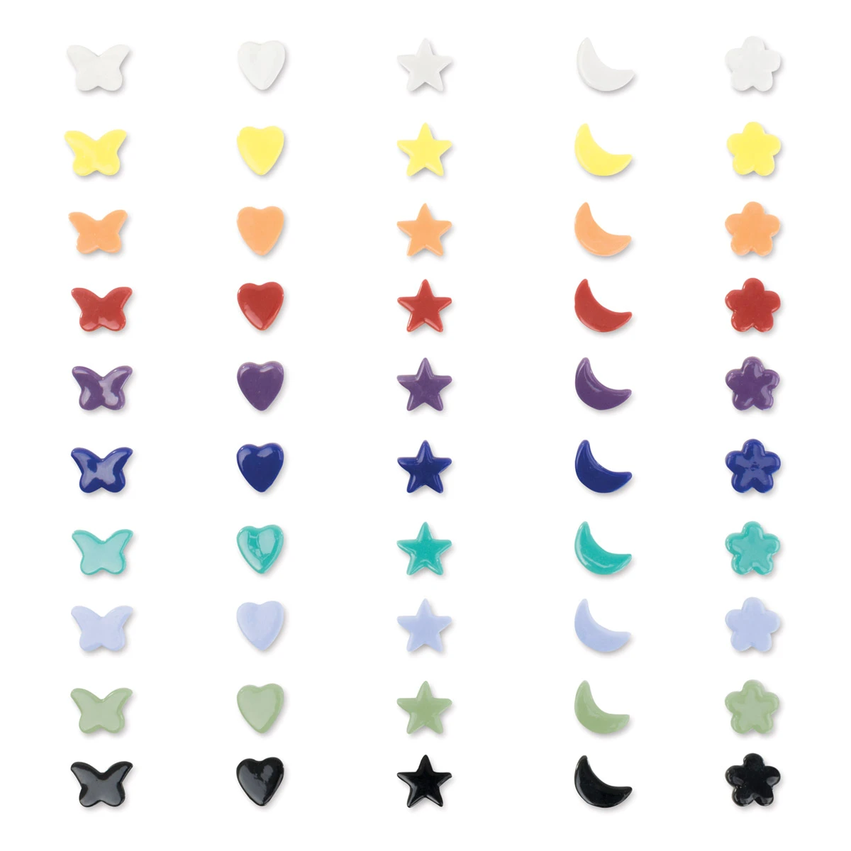 Add a special finishing touch to your handmade projects with Diamond Tech Whimsy Shape Tiles. Featuring gently rounded corners, they’re available in both iridescent and opaque varieties. Each package contains a variety of playful shapes, including stars, butterflies, hearts, crescent moons, and flow…