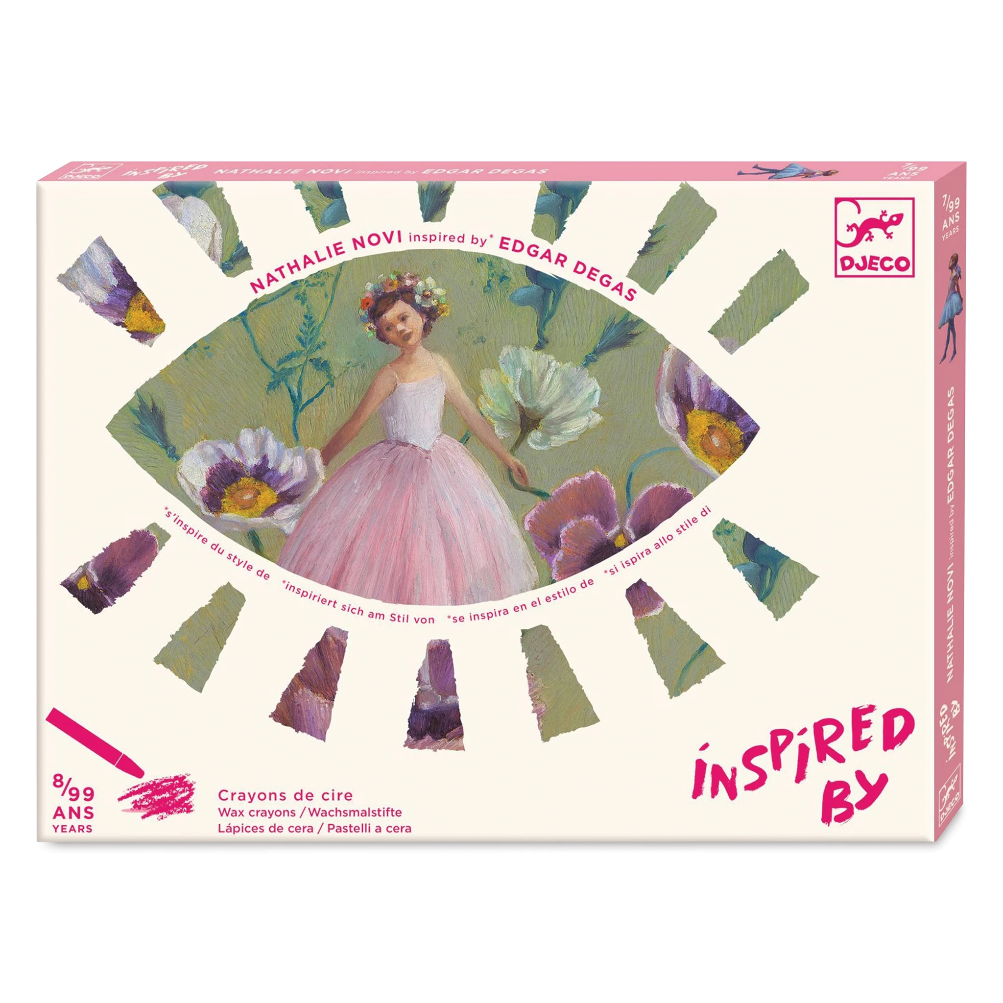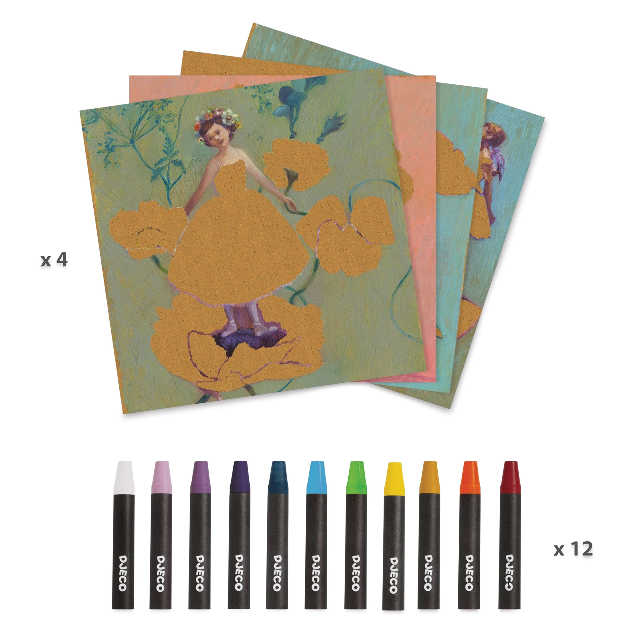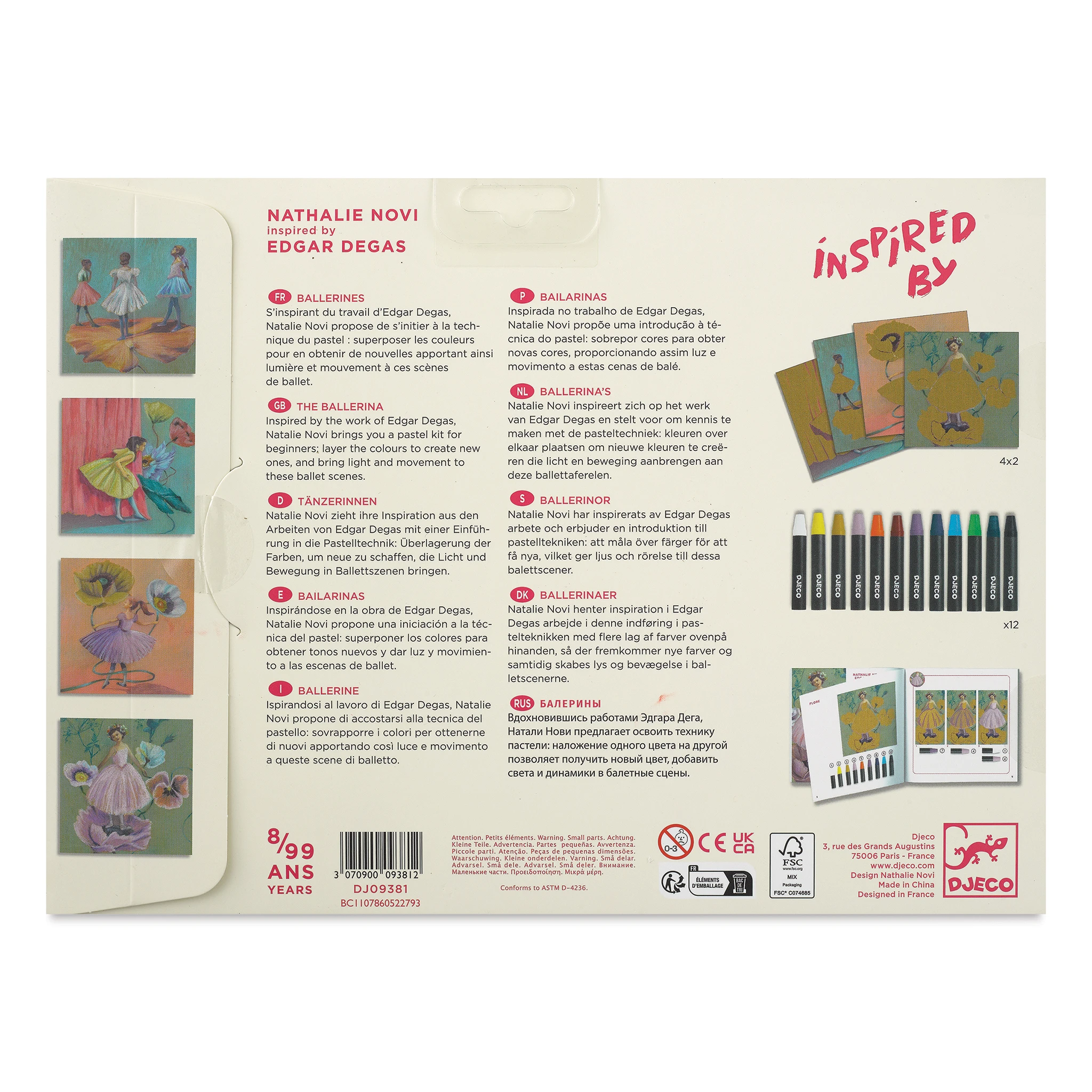 Complete colorful portraits of ballerinas with the Djeco Inspired By The Ballerina Wax Crayons Kit. Inspired by the works of Edgar Degas and designed by Nathalie Novi, kids and crafters of all ages can breathe life into these beautiful images by layering the highly pigmented grease pencils’ colors t…