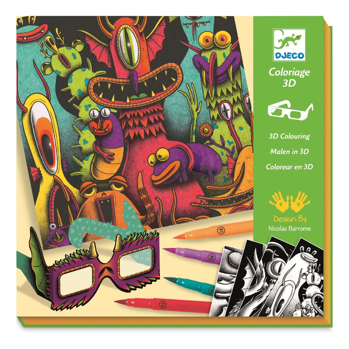 Make eye-popping artwork with Djeco Le Grand Artist 3D Coloring Kits. These coloring kits for kids include markers in warm and cool hue, so kids can experiment with color and watch their images come to life when they put on their 3D glasses. Perfect for ages 7–13, they contain high-quality, non-toxi…