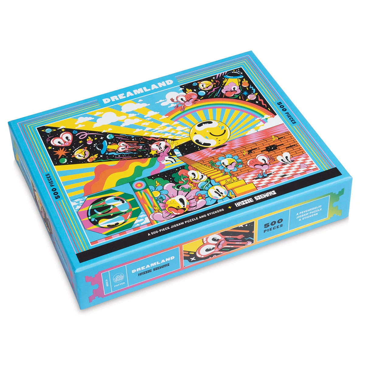 Immerse yourself in the poppy, psychedelic world of artist Hattie Stewart with the Dreamland 500 Piece Puzzle. Filled with vibrant retro designs, this jigsaw puzzle is bold, bright, and charmingly off-kilter. It makes an ideal gift for young artists and puzzle enthusiasts, and once complete adds a j…