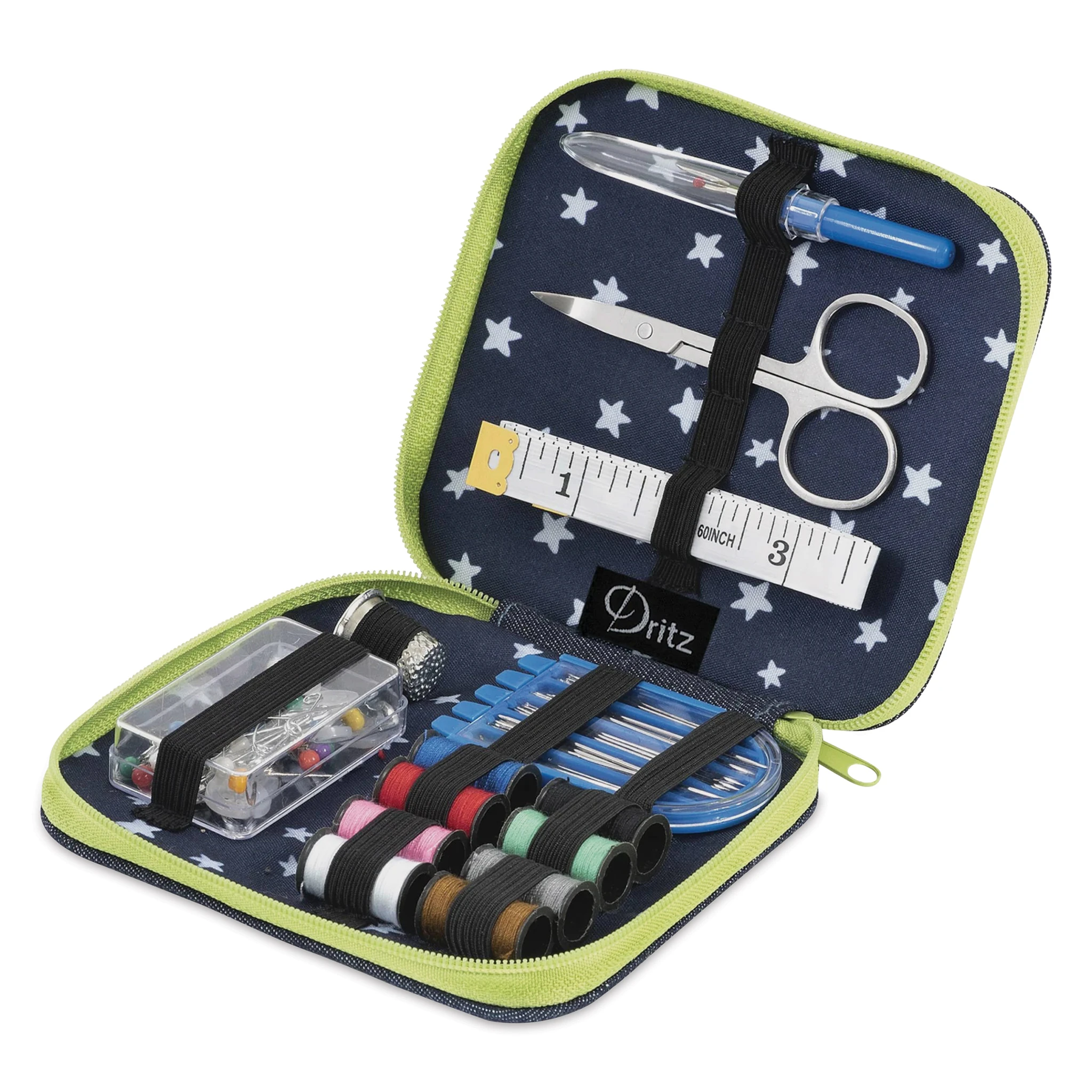 The stylish Dritz Denim Case Sewing Kit is small enough to travel anywhere but has everything you need for an on-the-go sewing project. All the included sewing tools fit in the smart denim case, which closes securely with a colorful lime zipper. Whether you’re traveling, at college, camping, or anyw…