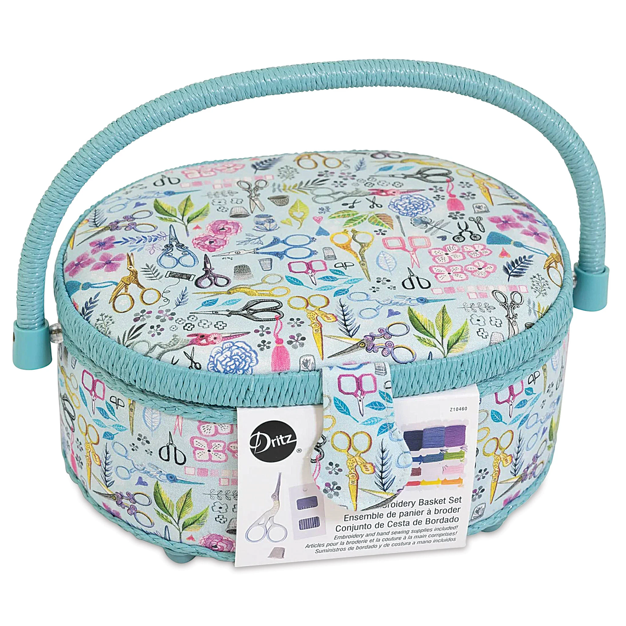 Be prepared to work on any sewing, embroidery, or craft project with the Dritz Embroidery Basket Set. This adorable basket comes with the basic supplies needed for embroidery and hand sewing projects and is perfect for carrying and storing your other essential items. The basket also features a remov…