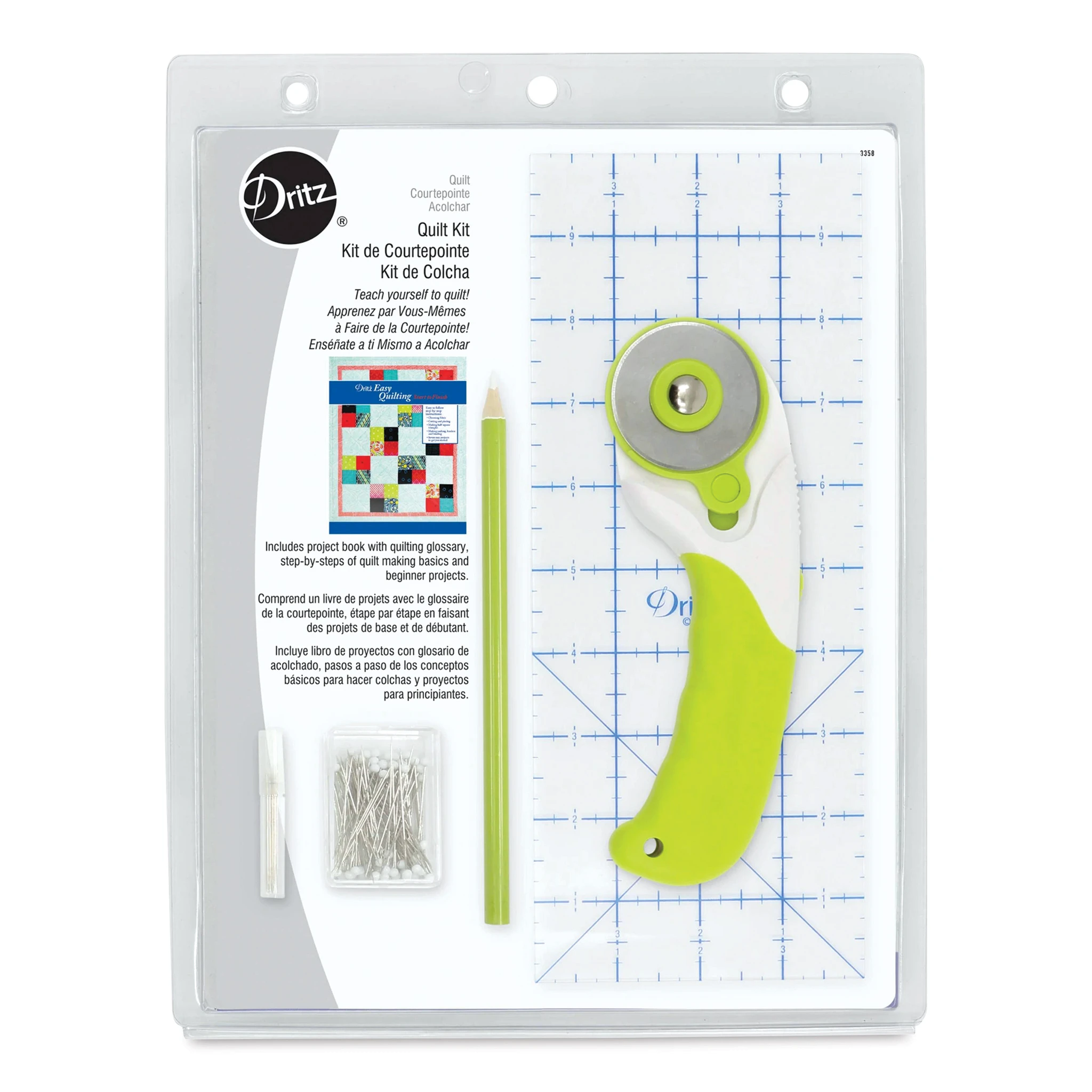 Learn the basics of quilt making with the Dritz Essential Quilt Kit for Beginners Kit. Designed especially for those who have never quilted before, this kit includes all the essential tools you need to get started. The kit includes a 36-page, full-color instruction book that walks you through each o…