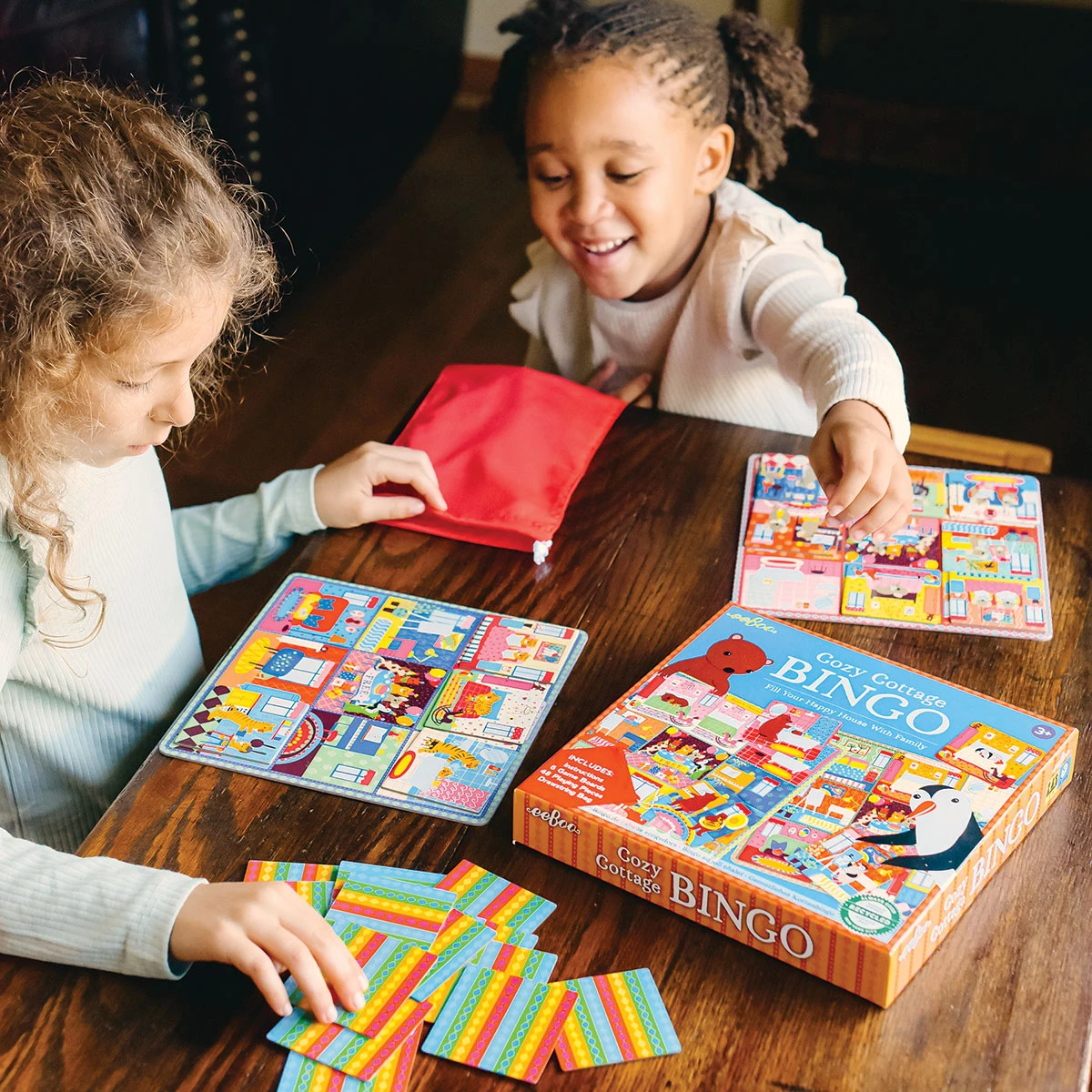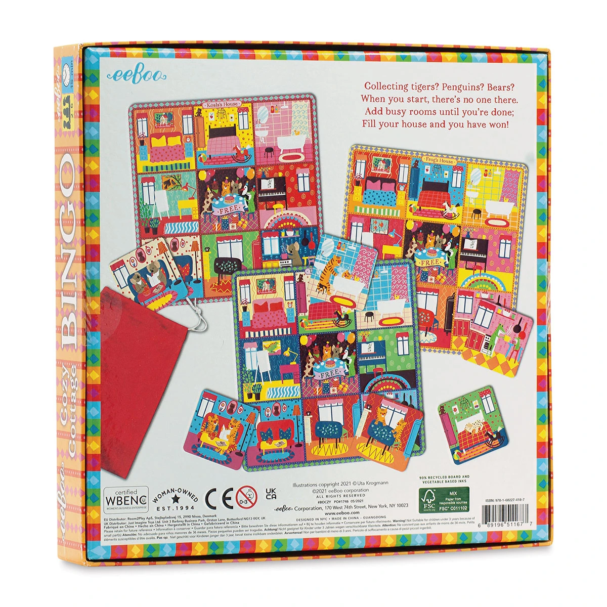 Eeboo Cozy Cottage Bingo makes the classic game of Bingo a fun and engaging way to interact with small children. Each of the six boards is a different animal’s house with nine rooms. Players draw chips, and if they have the house card that corresponds to the chip, they can start to fill their house …