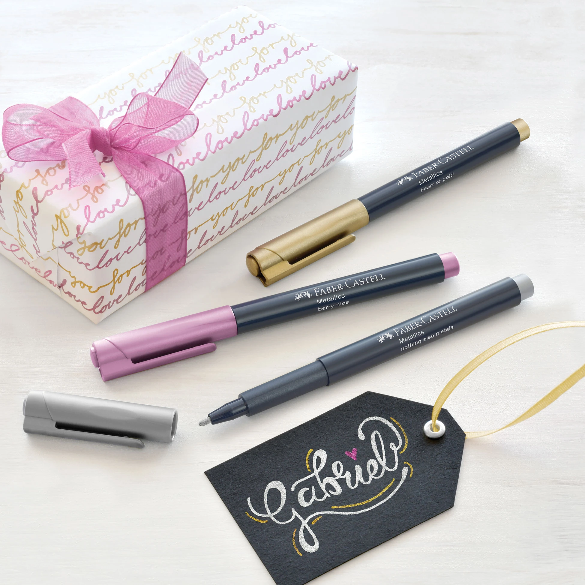 Faber-Castell Pitt Artist Metallic Pens feature shimmering, highly pigmented ink, that allows artists to add a personal touch to smooth surfaces such as porcelain, glass, metal, plastic, as well as dark paper. The ink is acid-free, pH-neutral, odorless, smudge proof, splash proof, and will not bleed…
