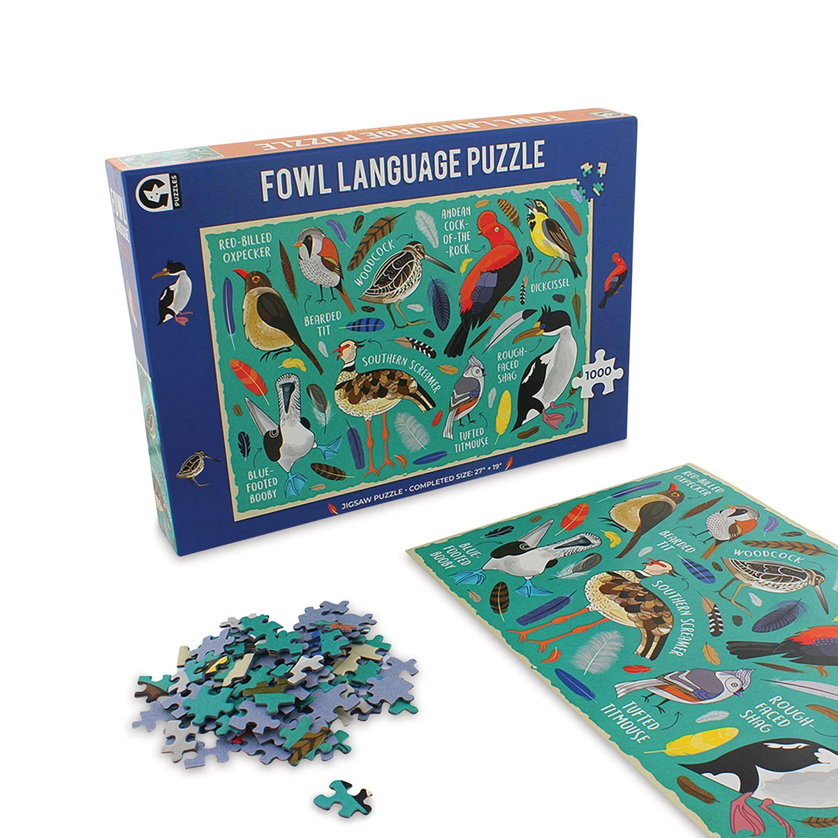 The Ginger Fox Fowl Language Jigsaw Puzzle features 1,000 pieces and nine cheeky bird names that will really get you going! From a blue-footed booby to a bearded tit, this collection of seemingly innocent birds all have rather foul names. If you’re a birdwatcher who titters over a tufted titmouse, t…