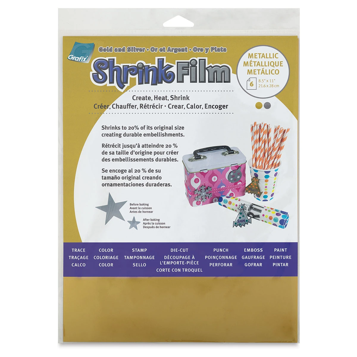 Add sparkle to art and craft projects with Grafix Metallic Shrink Film. Create your design, then heat and shrink to make instant, durable embellishments.