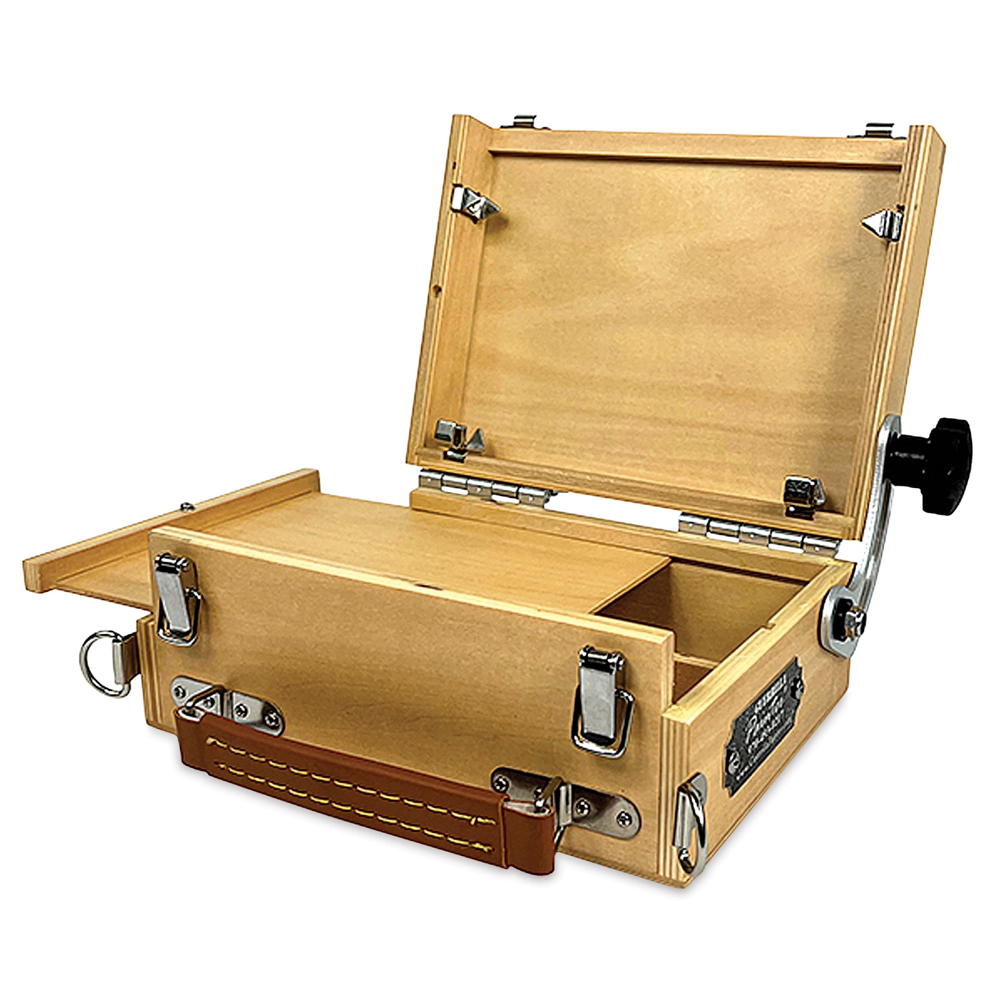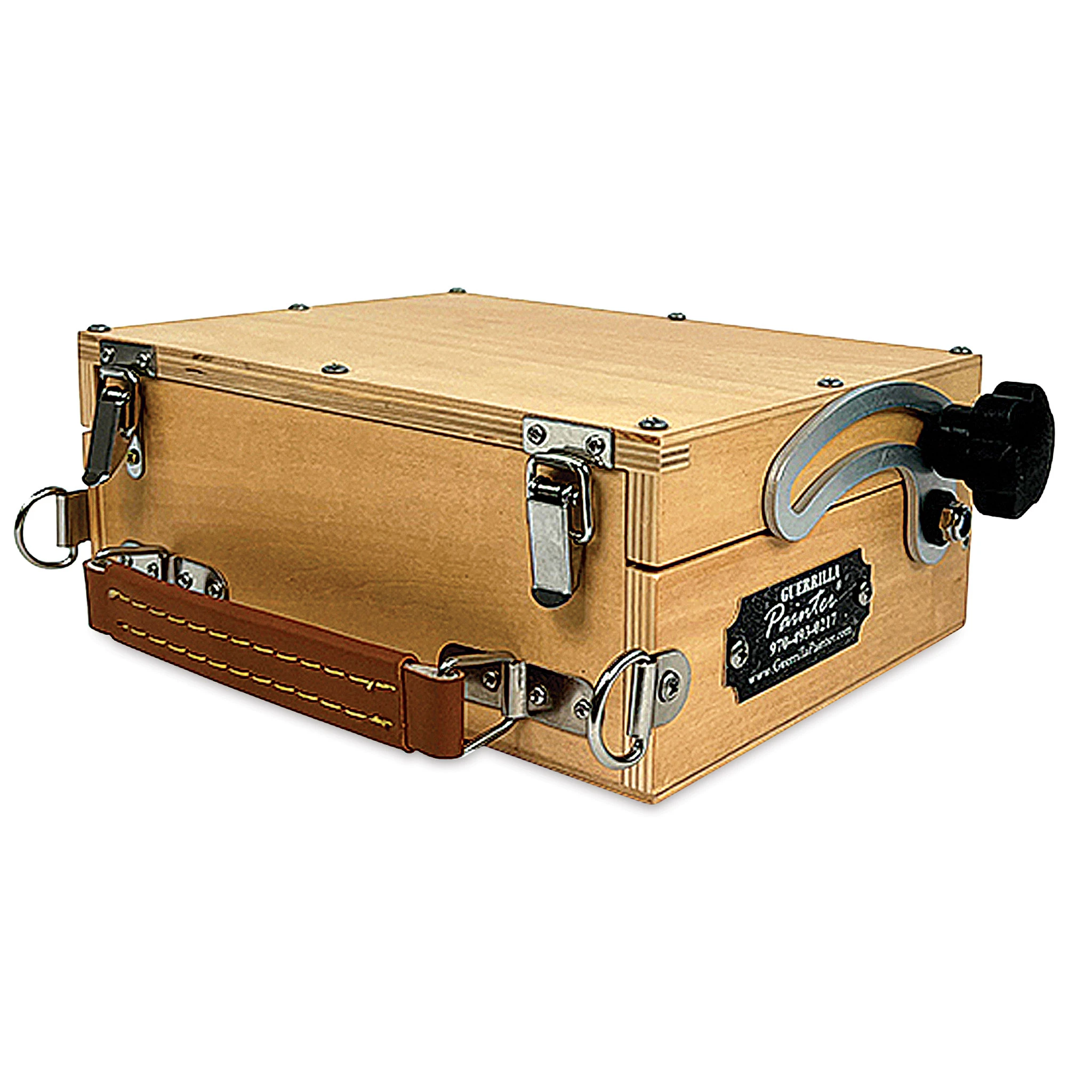 The compact and lightweight Guerrilla Painter Pocket Box V4.0 is the perfect pochade box for artists on the go. Made of wood, stainless steel, and aluminum with a lacquer finish, the box features a sliding palette that reveals a 1-1/2″ deep space for storing supplies, and is ideal for handheld, lapt…