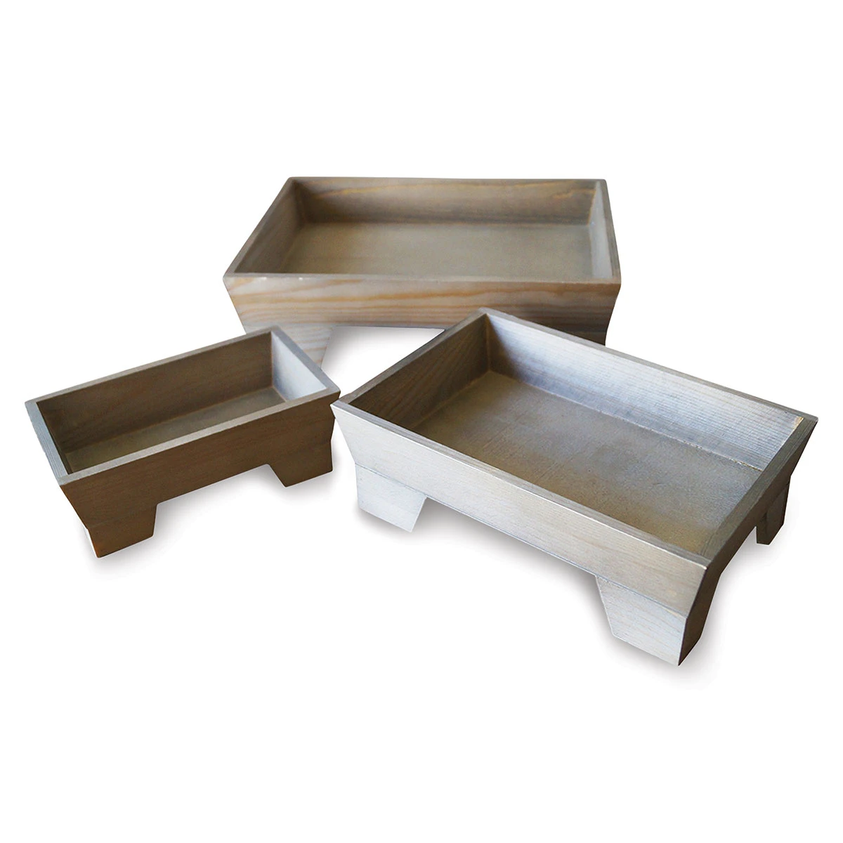 The Hampton Art Footed Wooden Tray Set brings a rustic look to any space. This set of three decorative trays is great for storage and display.