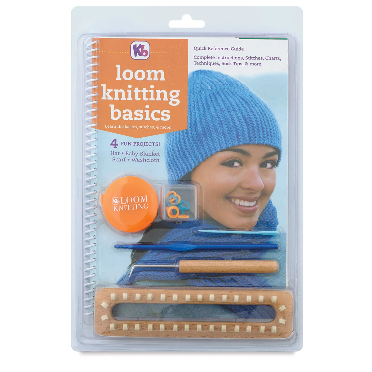 The KB Loom Knitting Basics Kit is perfect for knitters just getting started. It features an easy-to-understand guide with lots of how-to photos and illustrations, plus all your essential tools and four fun project patterns. The small but versatile 32-peg loom can make a wide variety of pieces, incl…