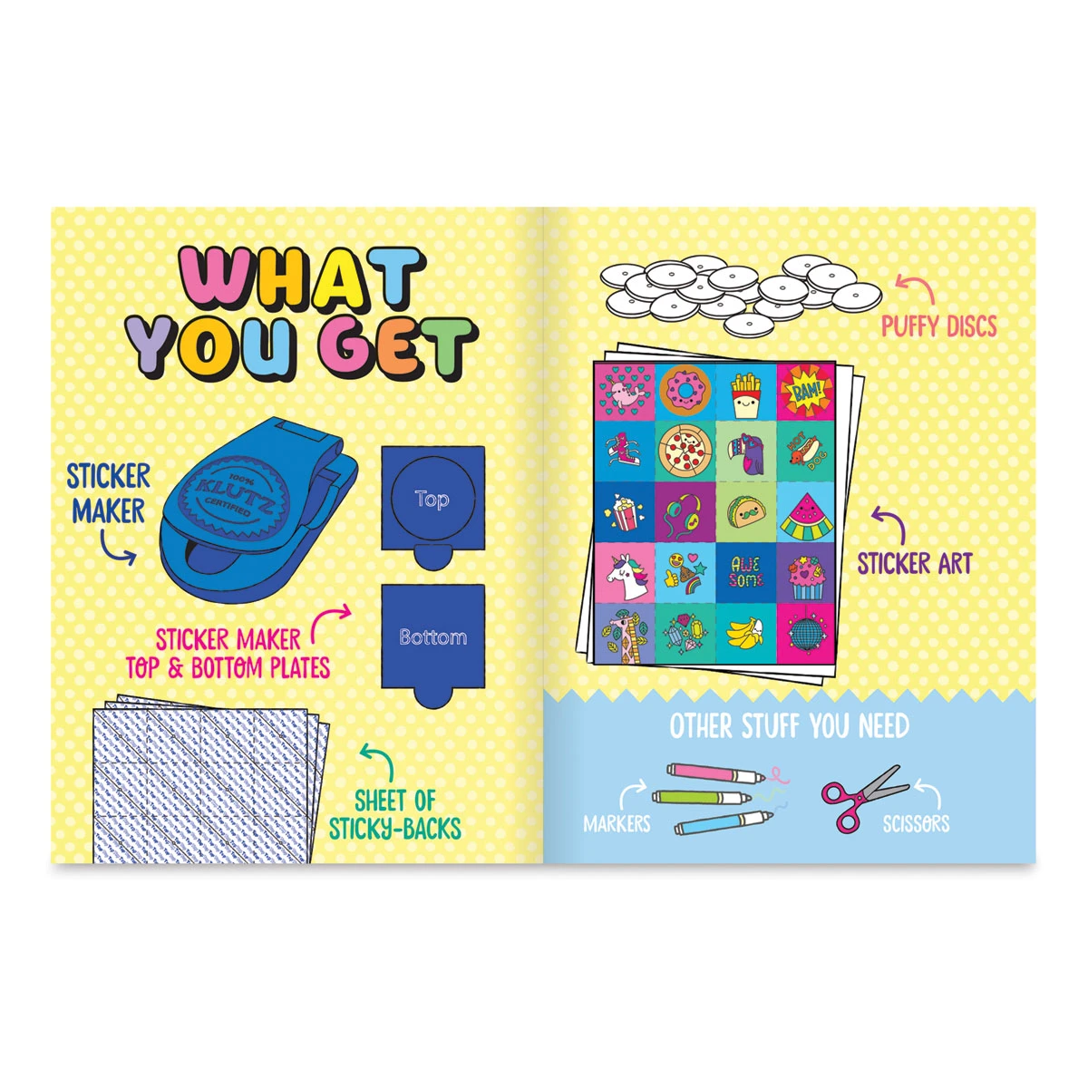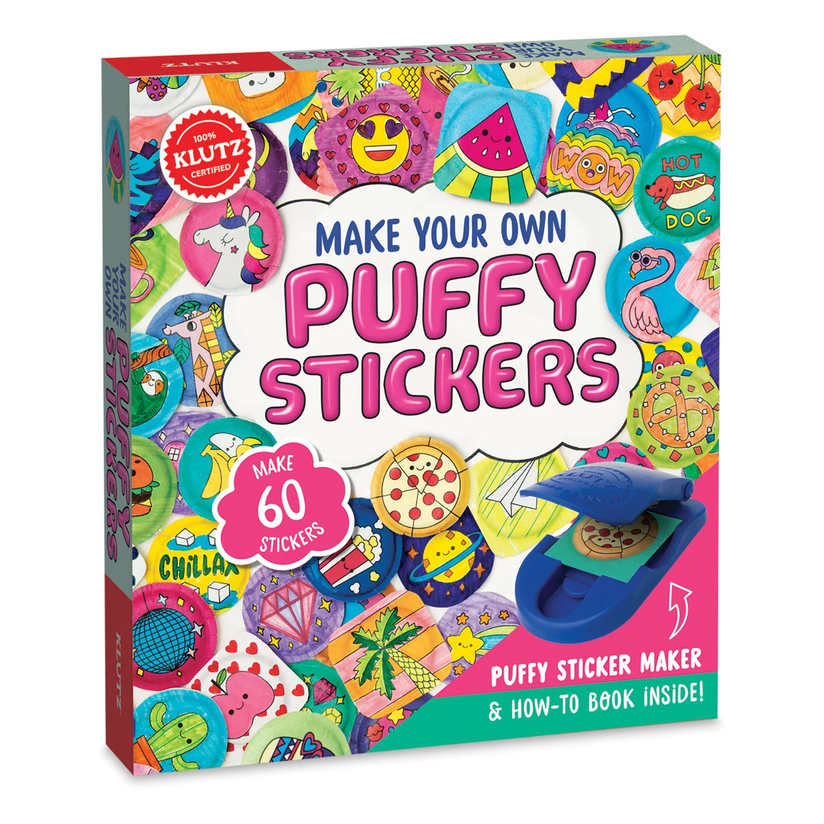 Decorate your school supplies, notebooks, phone, and more with one-of-a-kind squishy stickers! Klutz Make Your Own Puffy Stickers includes everything you need to easily create 60 stickers, including colored and color-in illustrations and designs to turn into stickers.