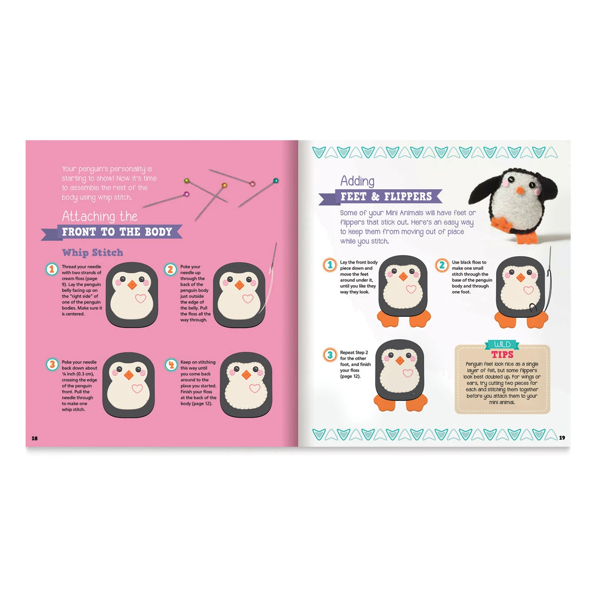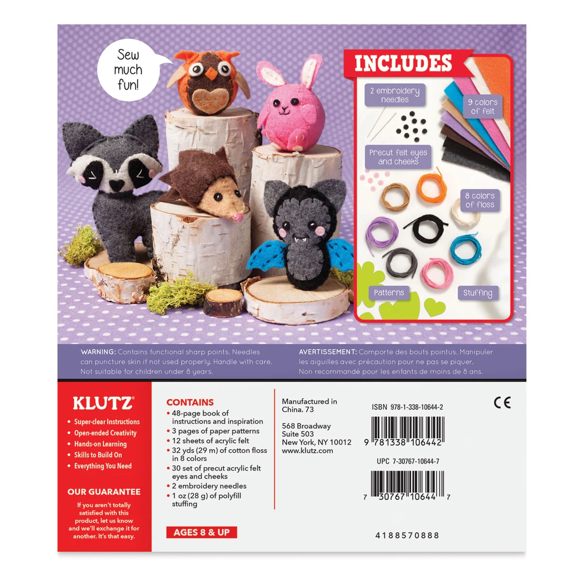 It contains one 48-page book, three pages of patterned paper, 12 sheets of felt, embroidery floss in eight colors, 15 sets of precut felt eyes …