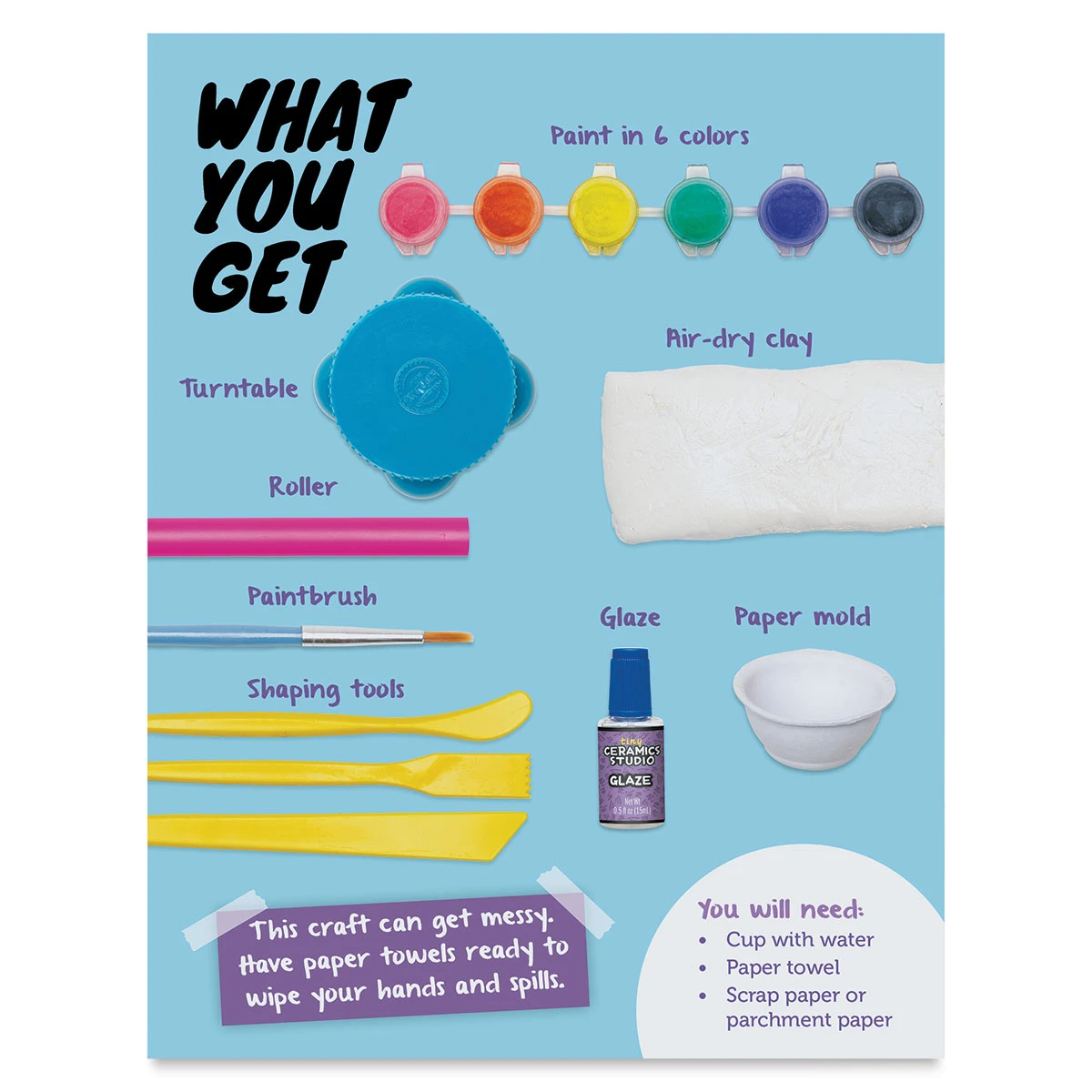 Make your very own itty-bitty pots, plates, bowls, and vases with the Klutz Tiny Ceramics Studio. Learn hand-building techniques with clay using the turntable and miniature bowl molds. Simply make your creation, let it air dry, paint it, and glaze it for a true artisanal finish! Recommended for ages…