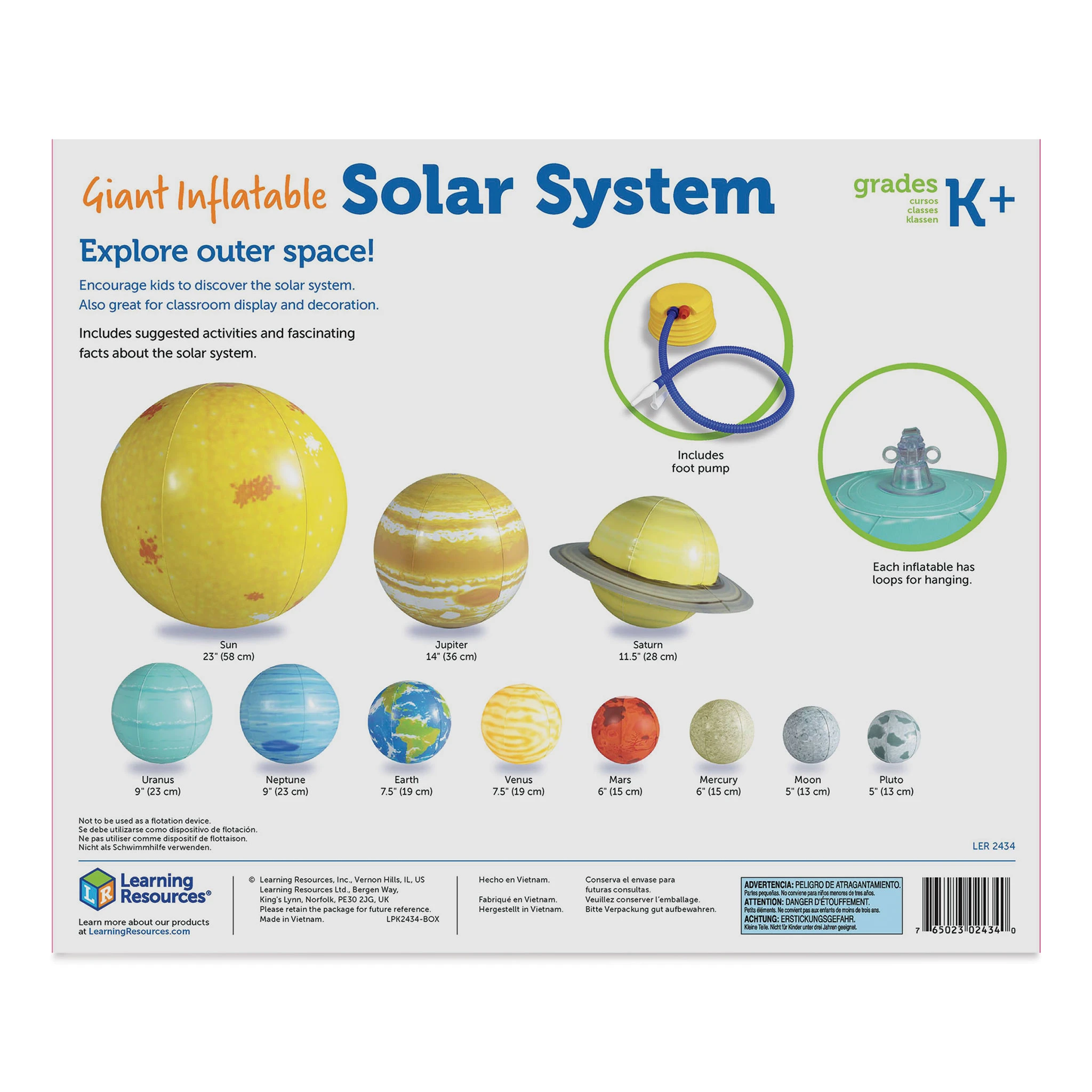 Teach kids all about the planets in our solar system with the Learning Resources Giant Inflatable Solar System Set. With this set, kids can learn about the position, order, and size of the planets and learn about rotation, revolution, and orbit. The inflatables are washable and come with hanging loo…