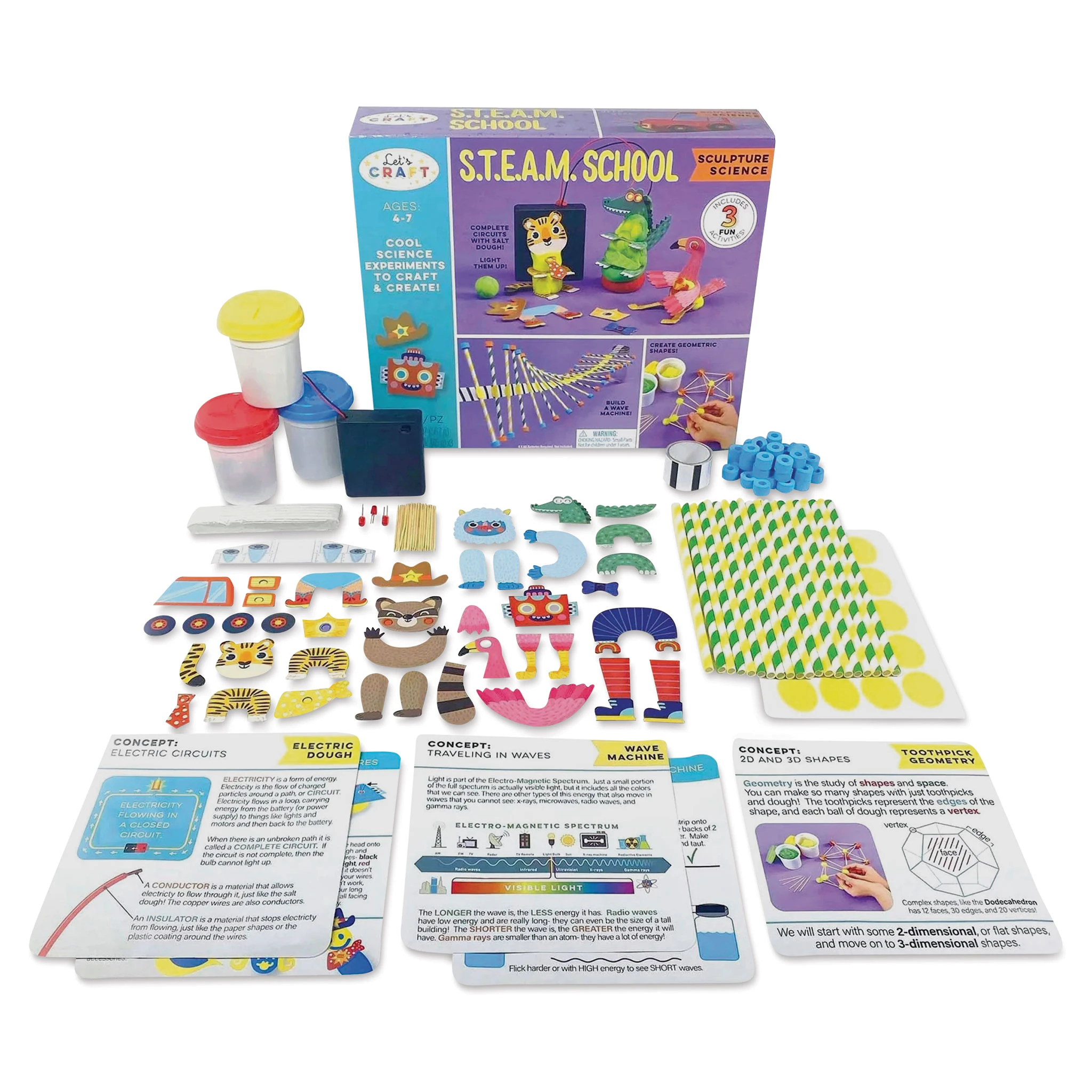 Make learning about math and science concepts fun with the Let’s Craft S.T.E.A.M. School Sculpture Science Set. With this set, kids can build conductive dough sculptures and learn about the flow of electricity as they watch them light up, make a wave machine and learn how light and sound travels, an…