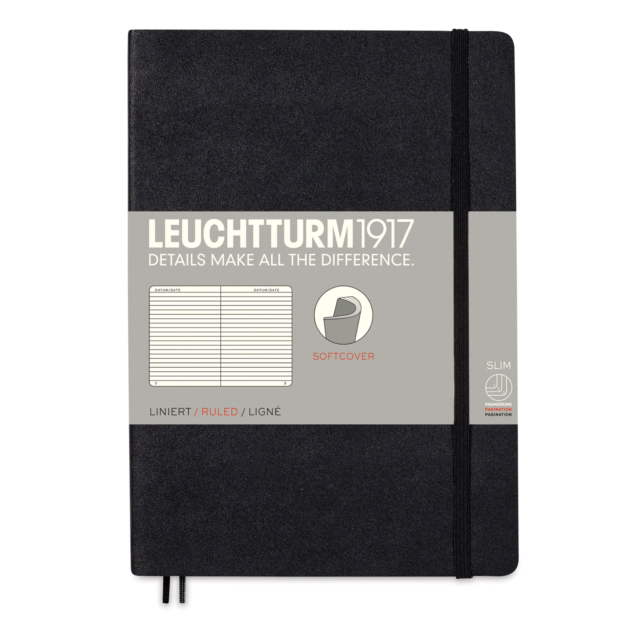 Flexible and lightweight, Leuchtturm1917 Ruled Softcover Notebooks are an ideal companion for work, studies, or daily life. These thread-bound notebooks open flat and feature 123 pages of ruled, cream-colored paper. Each page is numbered and printed with a space for the date at the top.