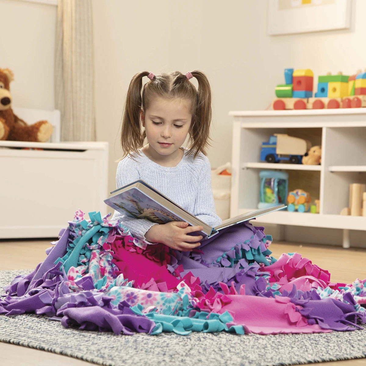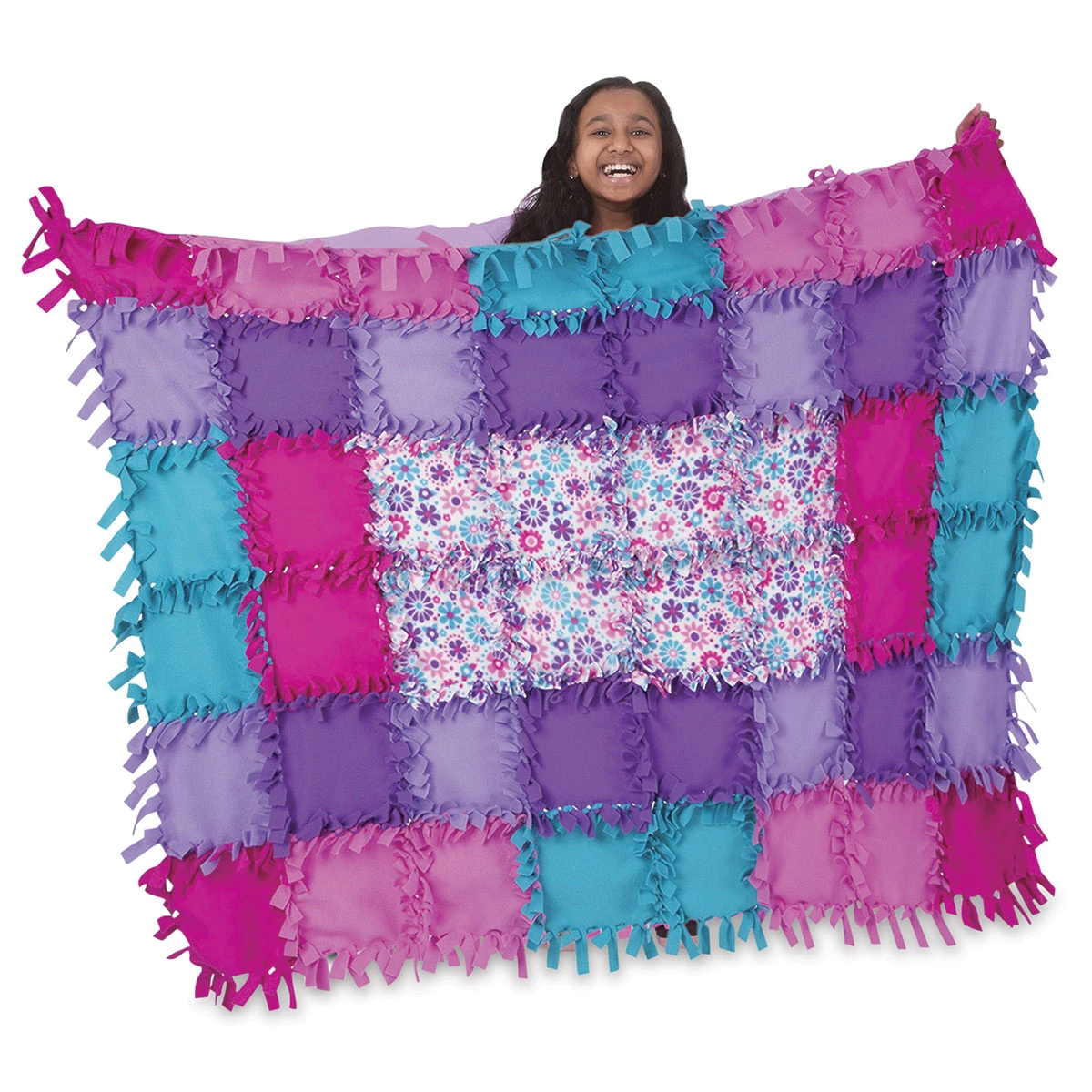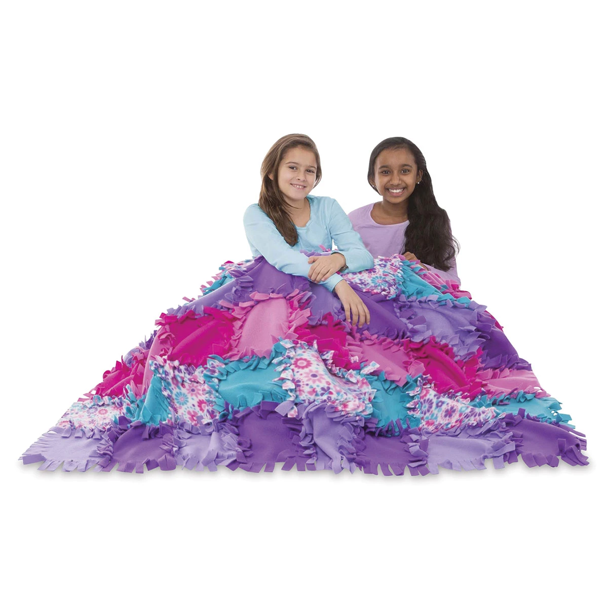 Craft a cozy quilt with this easy, no-sew technique! The Melissa & Doug Created by Me Flower Fleece Quilt includes 48, 12″ x 12″ super thick, soft fleece pieces with fringe to tie together and create an extra-large, colorful blanket.