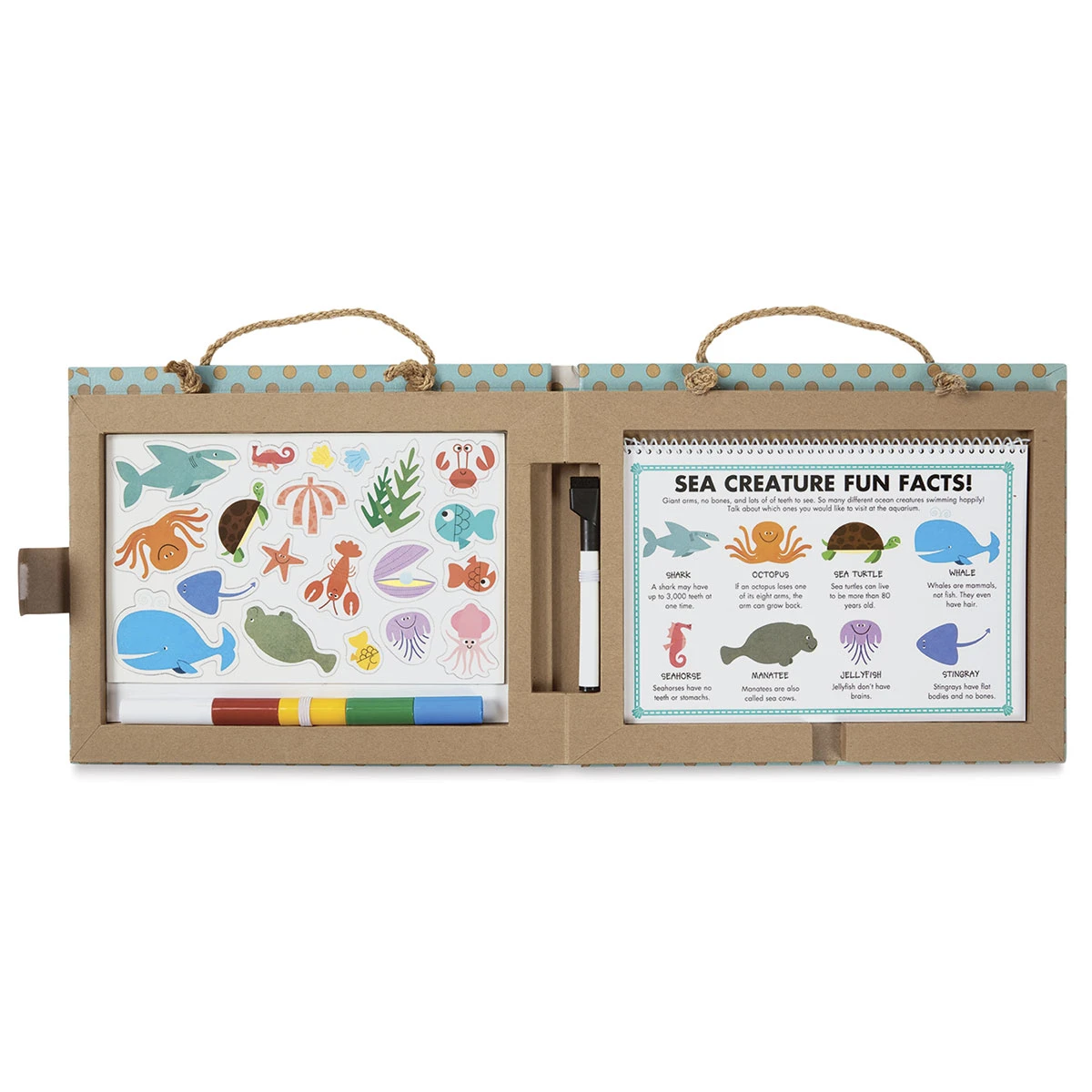 Open the dry erase activity book and get ready for prehistoric adventures, under-the-sea scenes, and other imagi…