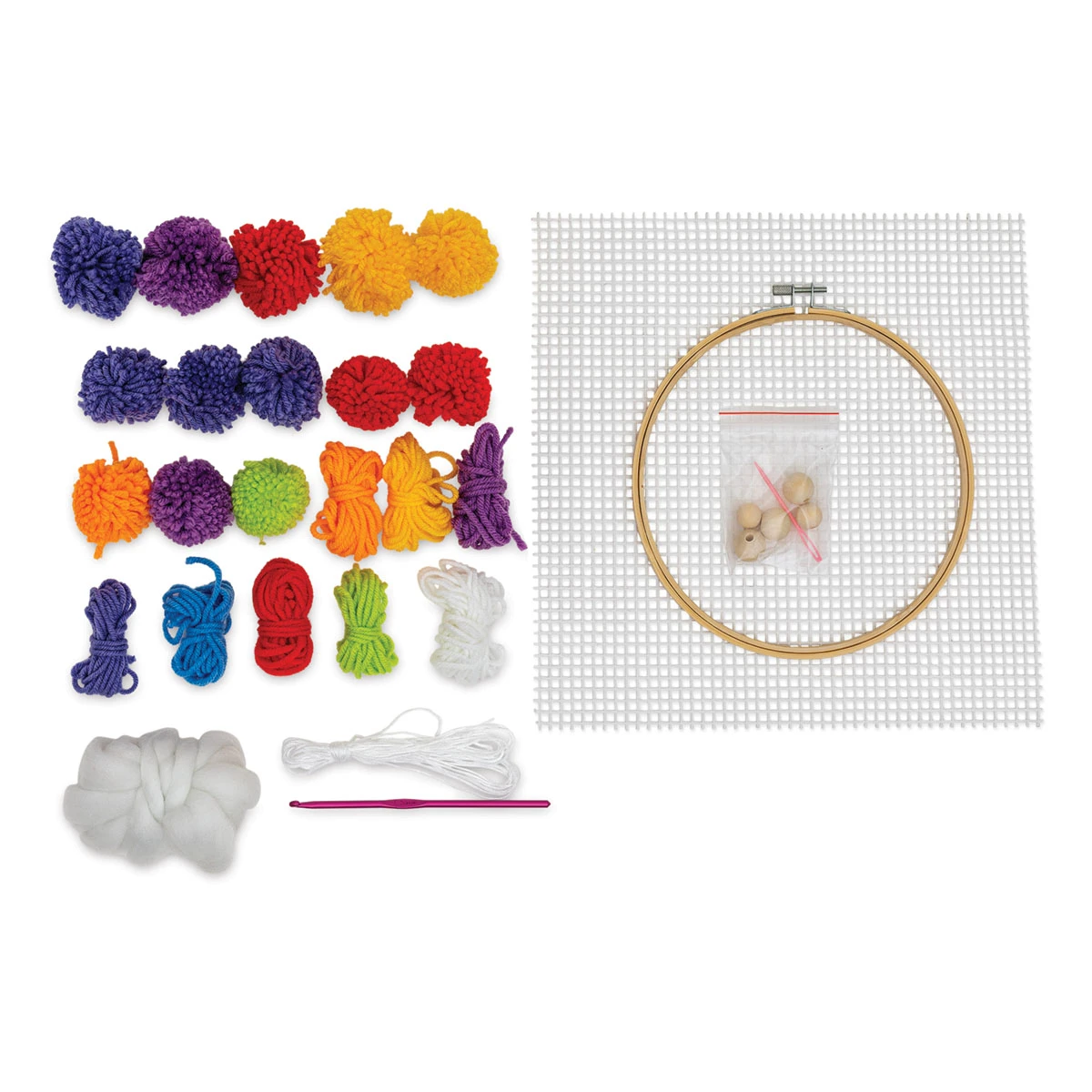 The Needle Creations Crochet Wall Hanging Kit contains everything you need to create a vibrant rainbow cloud wall hanging complete with pom-poms. There’s a durable wood hoop and vibrant acrylic yarn, along with a sturdy mesh canvas and a plastic needle. This crochet kit is suitable for beginners age…