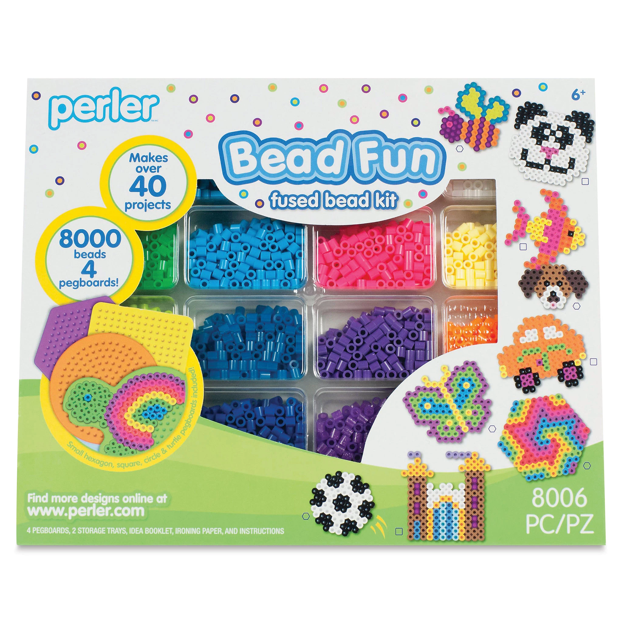 Create countless images with the Perler Bead Fun Fused Bead Kit. This kit has plenty of easy projects and enough beads to complete over 40 designs. It’s perfect for sleepovers, playdates, and camp activities. Includes 8,000 beads, four pegboards in different shapes, two storage trays, ironing paper,…
