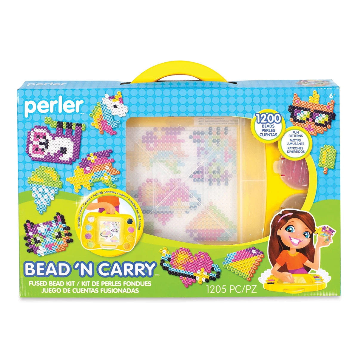 Take a fun activity on-the-go with the Perler Bead ‘n Carry Fused Bead Kit. Kids can tote their in-progress beaded projects in the innovative carrying case, which has hidden storage and a secure snap-close lid to securely hold the beads, Pattern Pad pages, and a large square pegboard. The fusible be…
