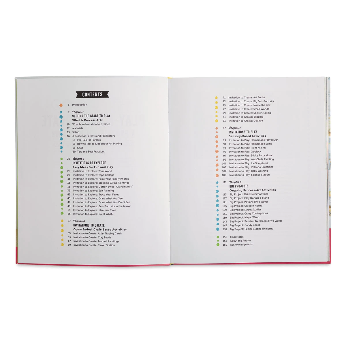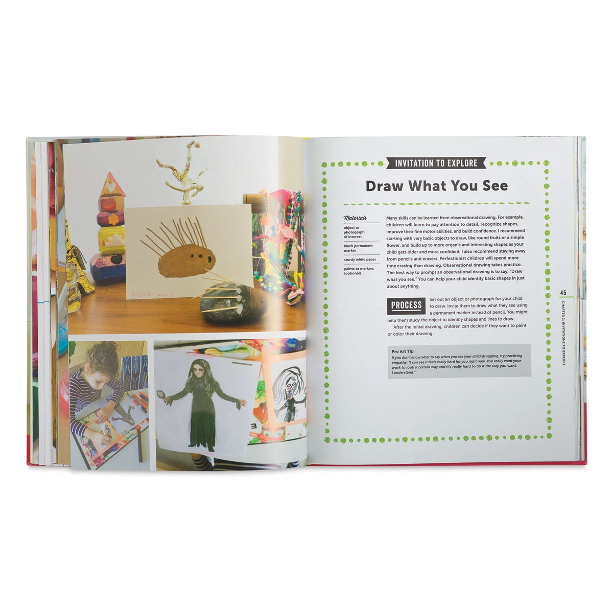 Encourage your child to create with Play, Make, Create: A Process-Art Handbook. It’s filled with over 40 “invitations” — or carefully designed prompts — to creative activities.