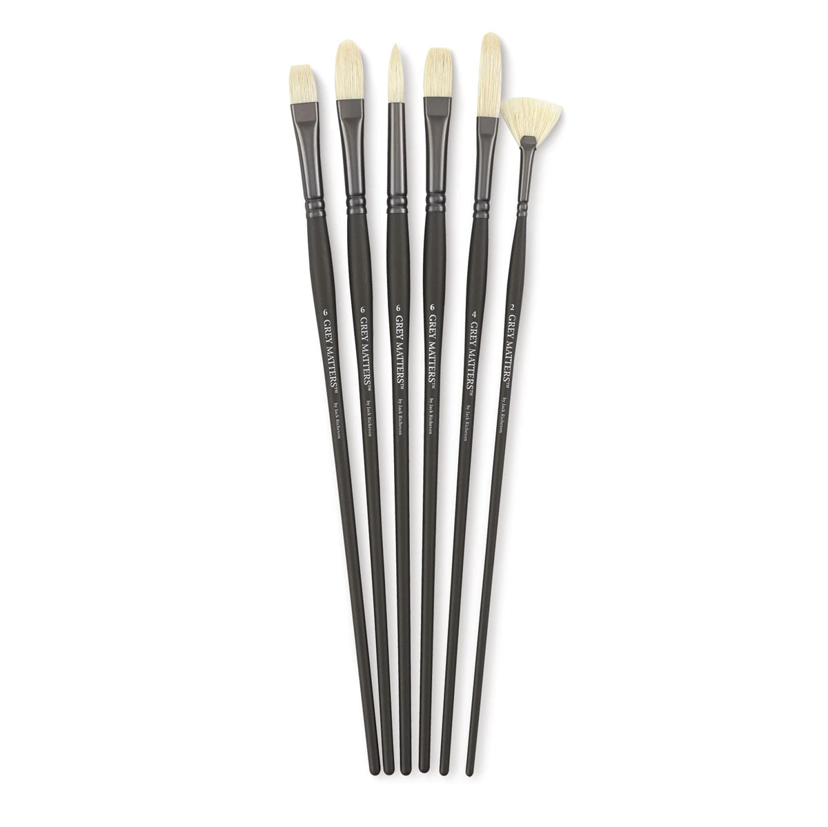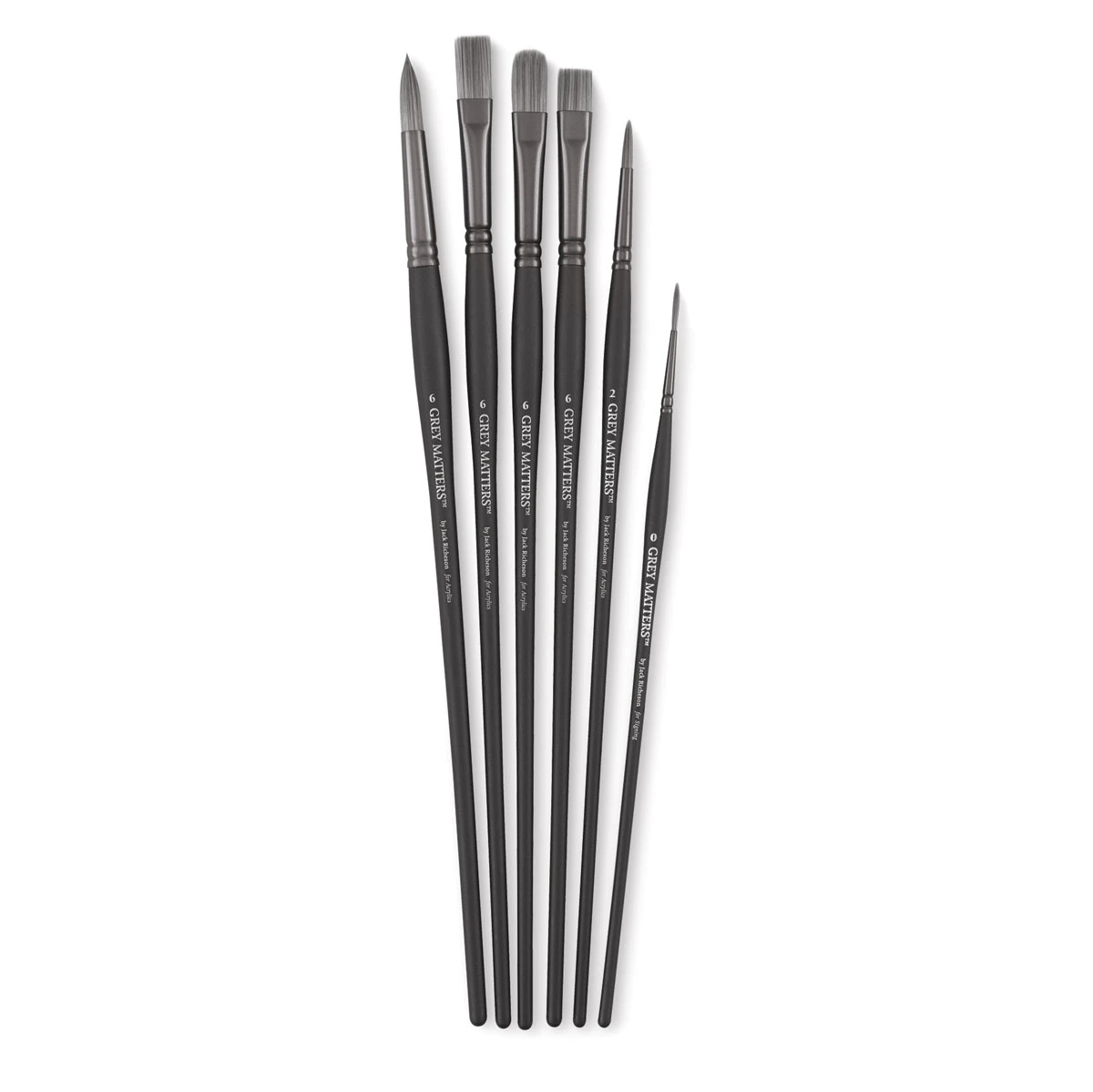 The Grey Matters brushes have no distracting colors or reflective metals that come between the artist and a perfectly chosen color.