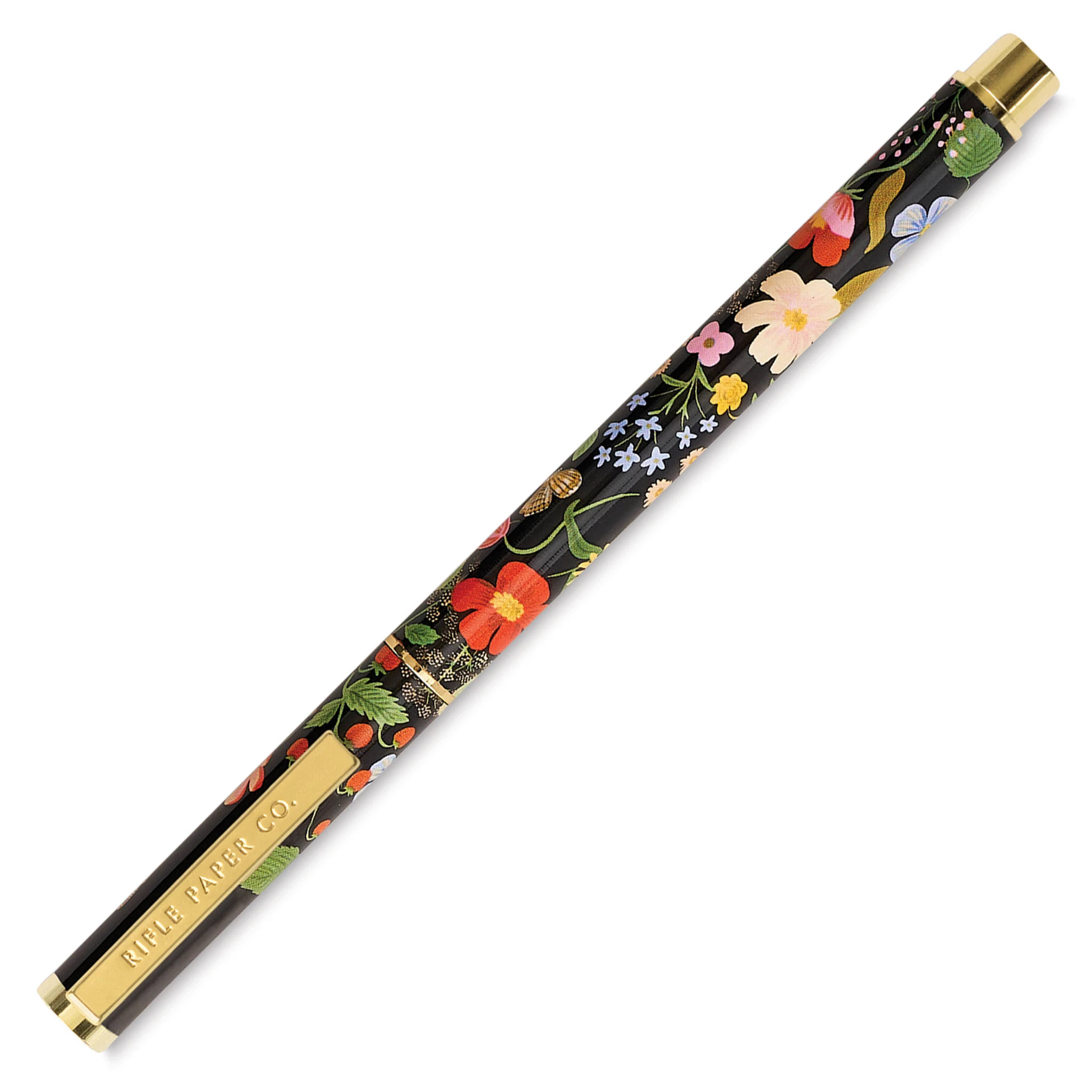 Turn any handwriting task into a stylish habit with Rifle Paper Co. Writing Pens. These comfortably weighted rollerball pens feature stainless steel bodies, bright brass accents, and colorful all-over printed patterns. A 0.5 mm rollerball tip delivers clean black lines to the page.