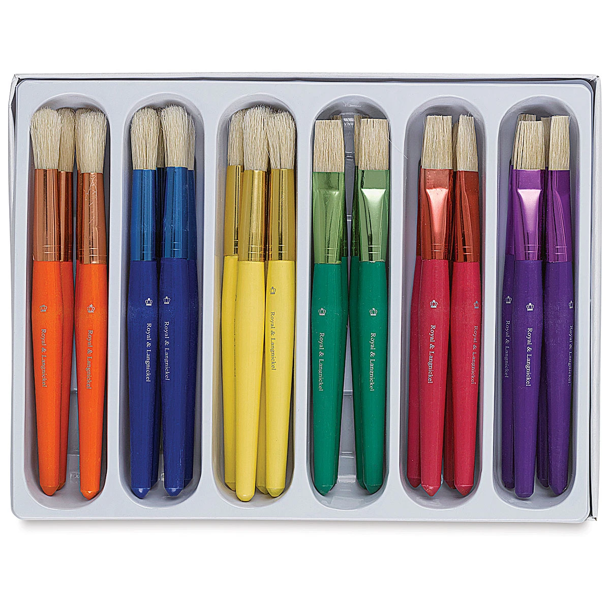 Royal & Langnickel Classroom Value Packs are available to suit every project, age group, class size, and budget. These sets are filled with an assortment of Royal’s most popular white bristle classroom brushes, contained in a versatile storage tray that doubles as a drying rack.
