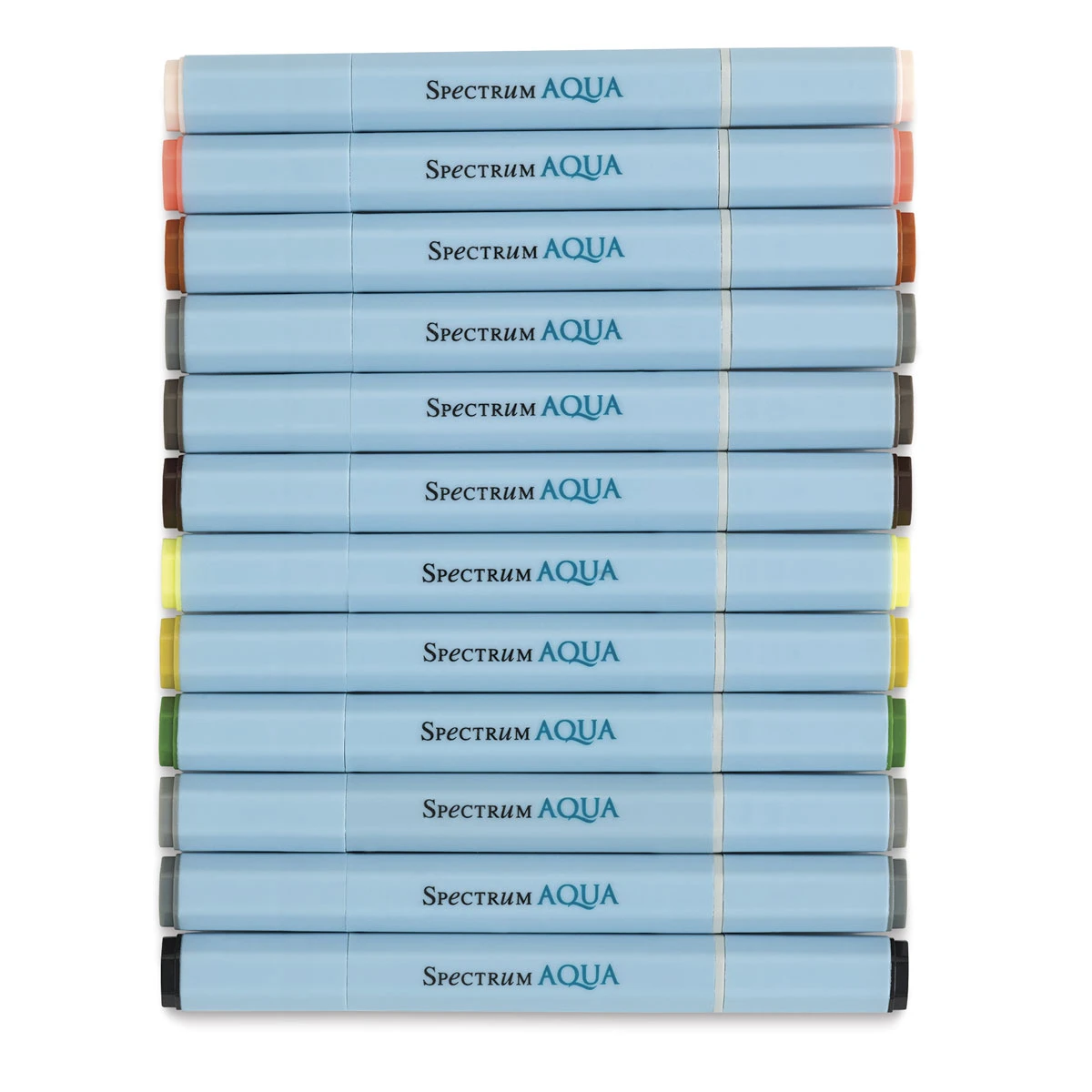Spectrum Aqua Markers combine the performance of a waterbased medium with the convenience and value of a dual-tipped marker. High-quality dyes assure flawless, even coverage, with all the definition and vibrancy to deliver outstanding results.