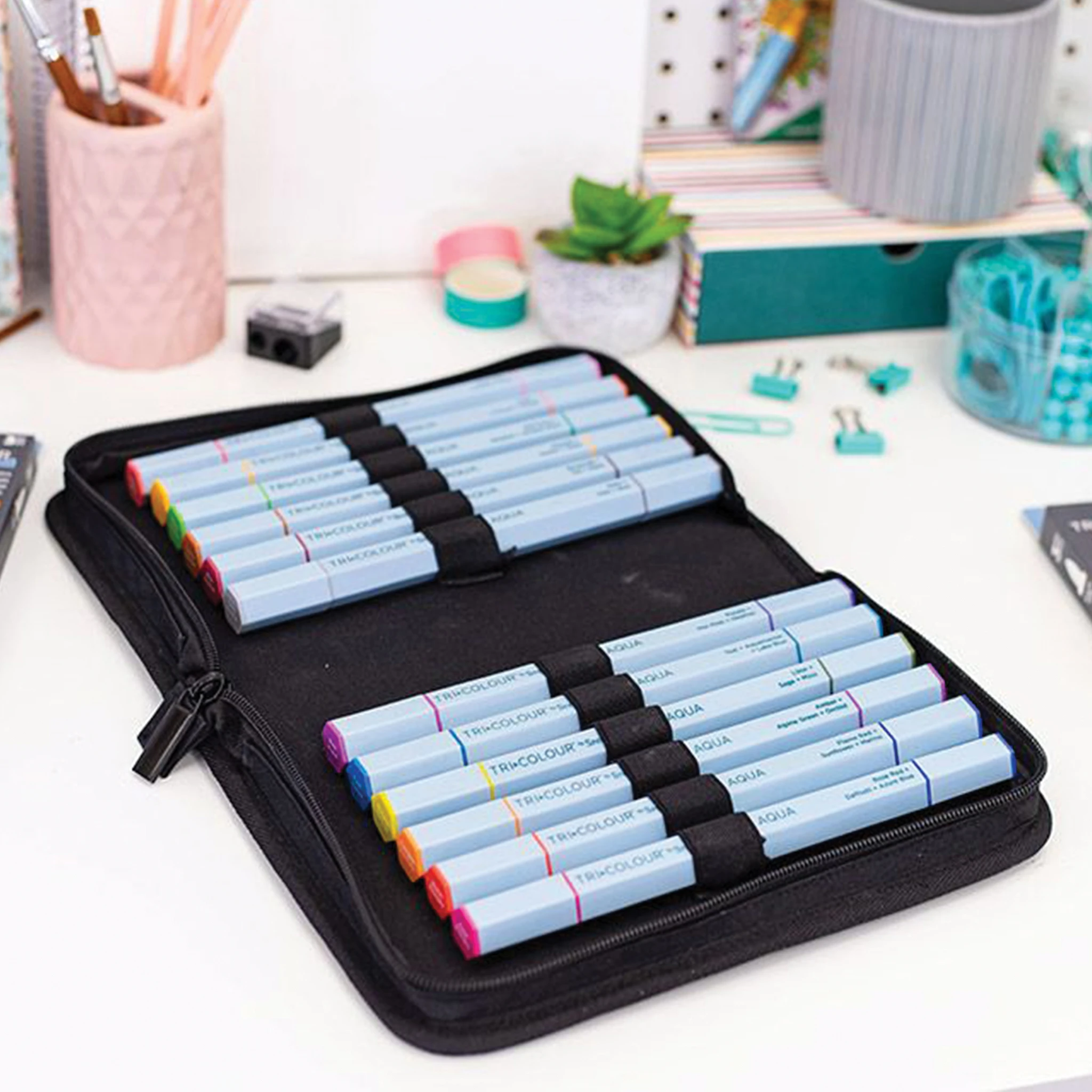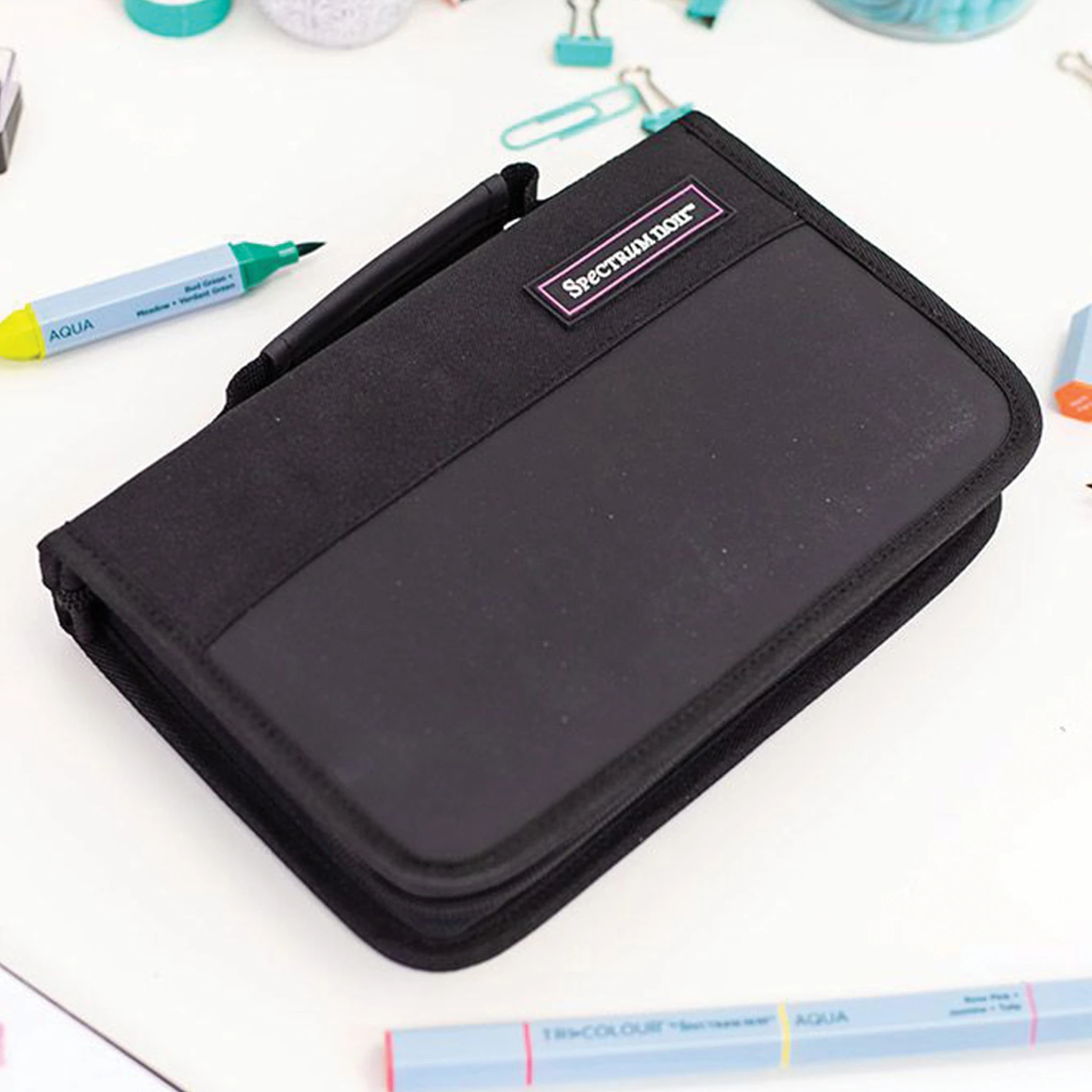 Keep your Spectrum Noir markers organized at home or on the go with the Spectrum Noir Marker Storage Wallet. This sleek, compact storage wallet holds 12 Spectrum Noir Tri-Blend or Tri-Color Markers. Made from sturdy black nylon, it features a zip closure and built-in handle.