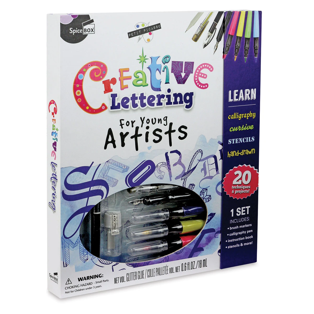 Learn the ins and outs of hand lettering with the SpiceBox Petit Picasso Creative Lettering for Young Artists Kit. Create eye-catching posters, cards, and more with this all-in-one set.