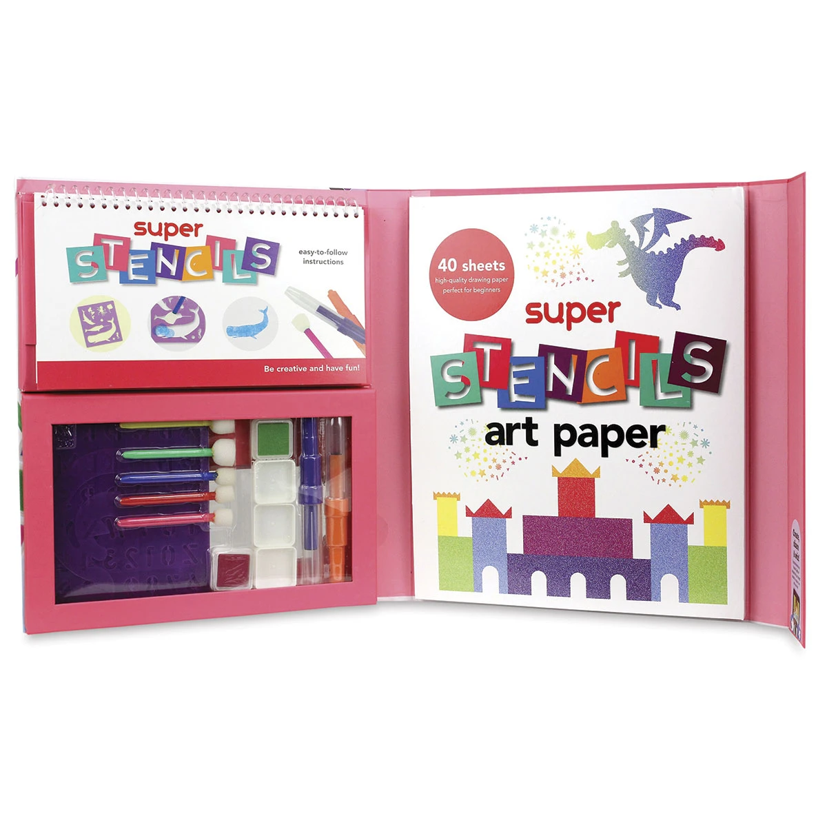 There’s no limit to young artists’ creativity with the Petite Picasso Super Stencils Kit from SpiceBox! Create incredible comics, stories, and scenes in seconds with fun, easy-to-use stencils, colorful stamp pads, stamps, sponge dabbers, blow pens, and more!