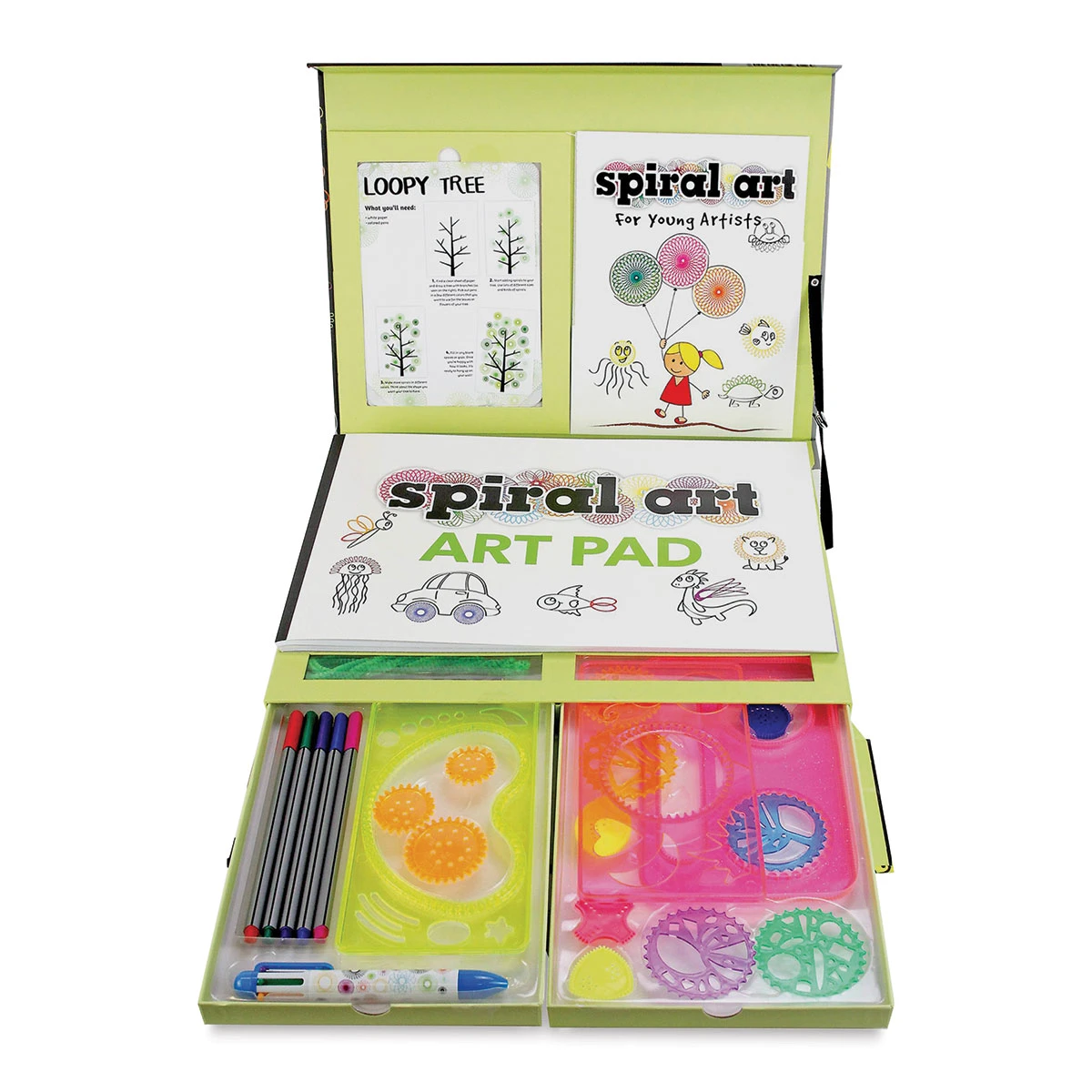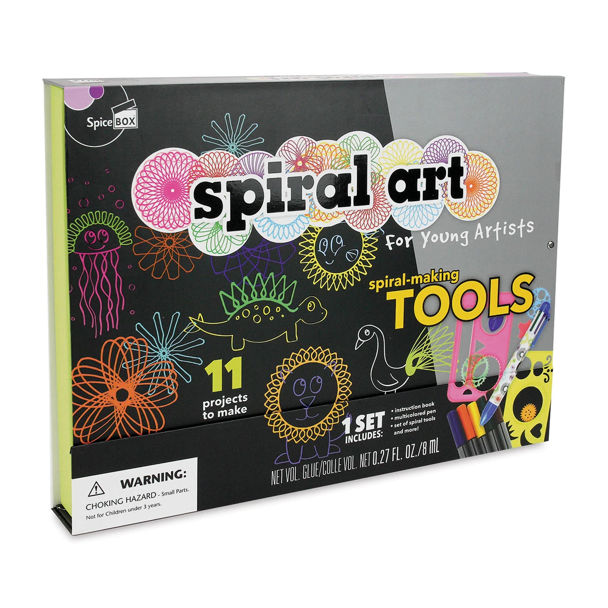 The SpiceBox Spiral Art for Young Artists Kit encourages kids to use their imagination to make awesome drawings and doodles using super cool spiral-making tools. Kids can use the easy-to-follow instructions to create up to 11 images of animals, flowers and more. The kit is compact, easy to store, an…