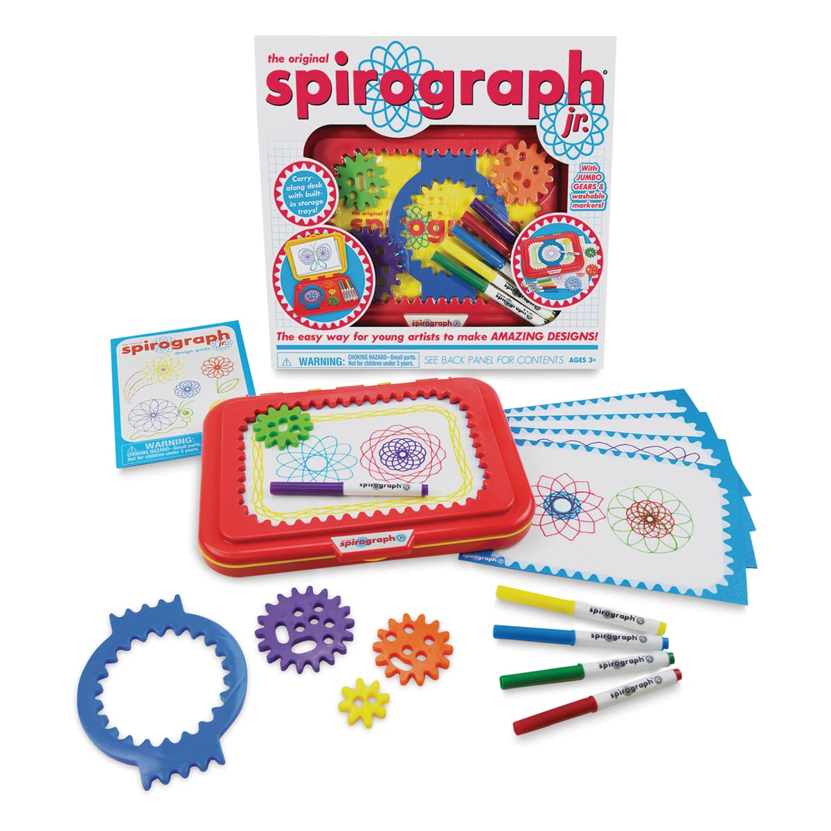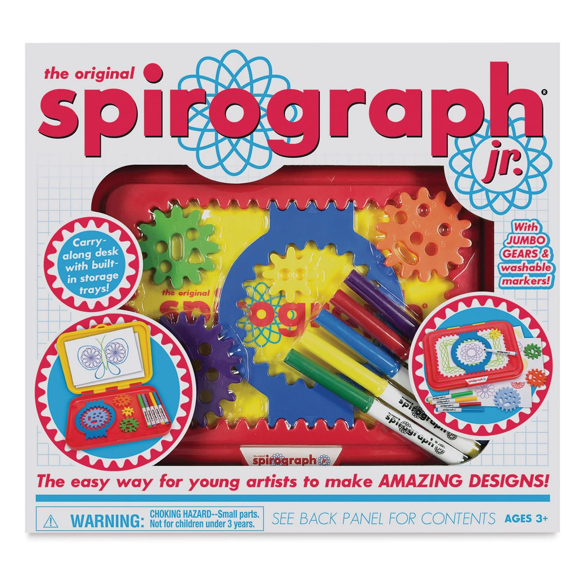 The Original Spirograph Jr. Set contains jumbo-sized pieces that make creating Spirograph art fun and easy for little hands, and an easy-to-carry drawing tablet doubles as a work station and handy storage case to keep everything neat. The set includes easy-to-use gears, 5 washable markers, 24 pages …