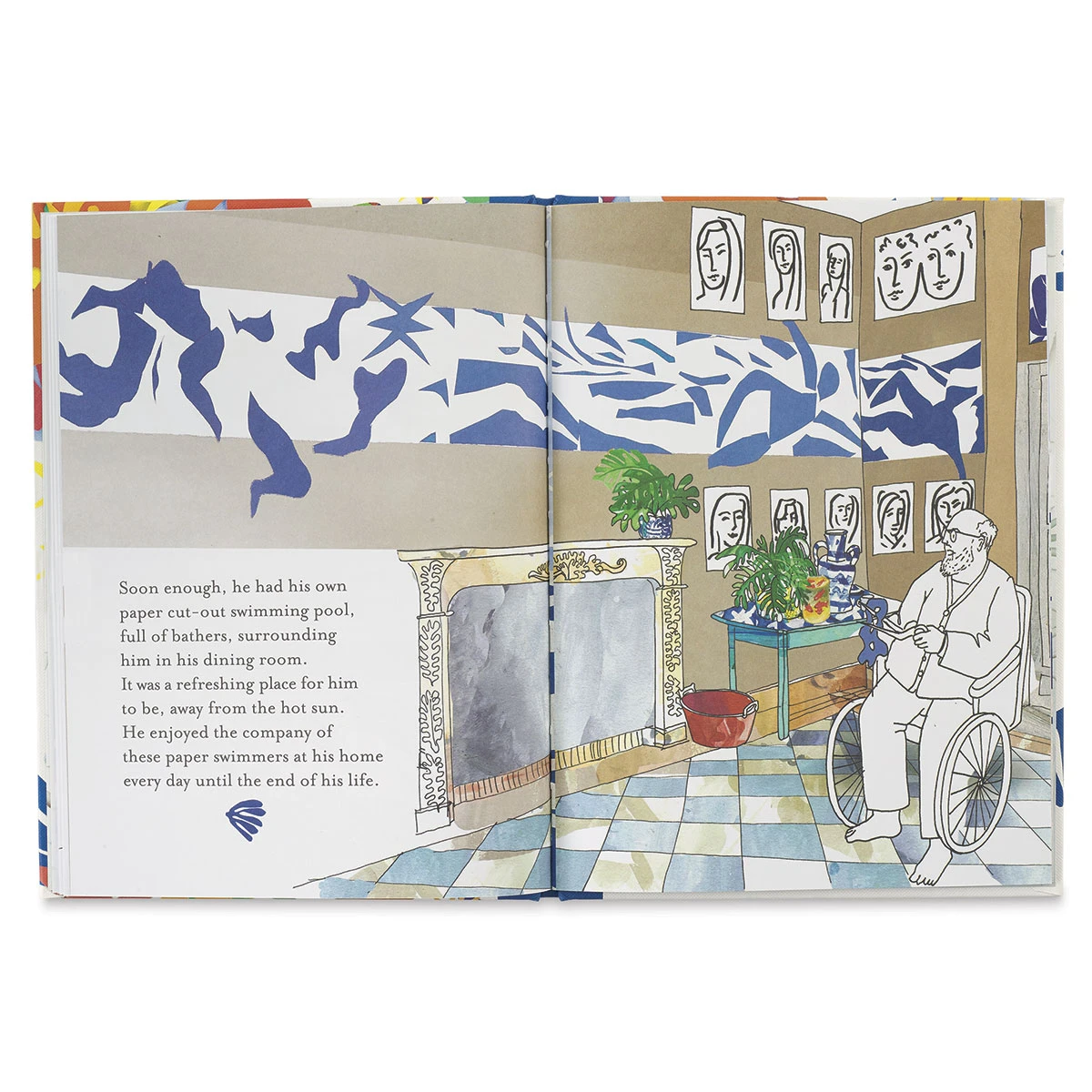 Inspired by Henri Matisse’s paper cutouts and collage work, The Swimmers is a great introduction to art for kids. This book starts with a short biography detailing Matisse’s life and how he started to create paper cutouts.