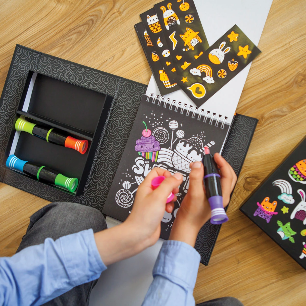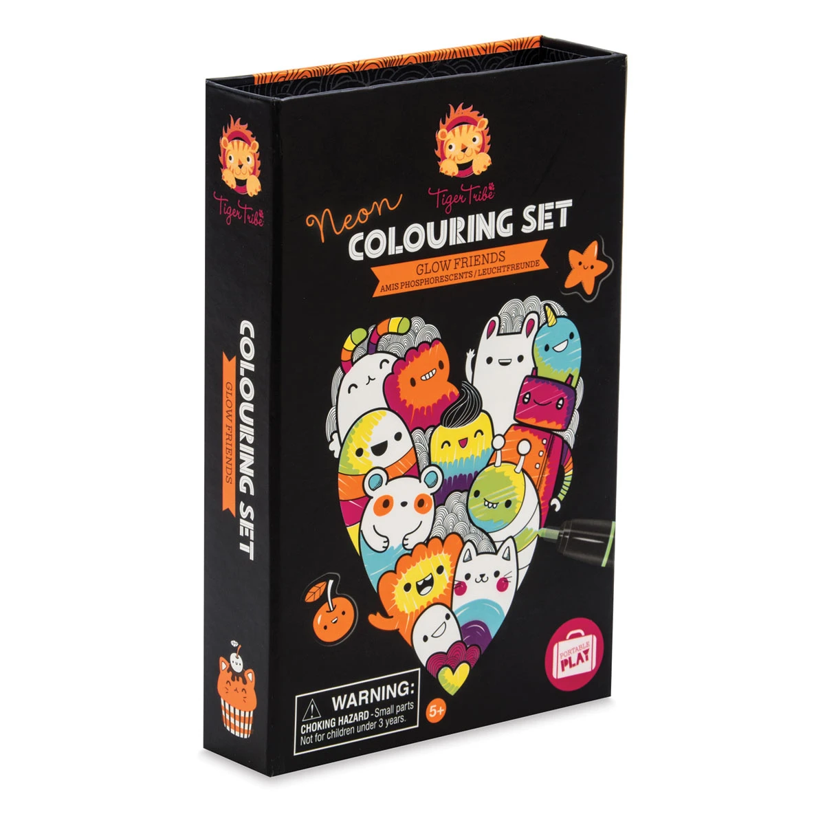 Kids get to color the cutest creatures ever with the Tiger Tribe Glow Friends Neon Coloring Set. A great gift for kids ages five and up, this coloring set includes a 36-page, spiral-bound coloring book with fun illustrations, along with neon markers and stickers for adding flair. The portable box lo…