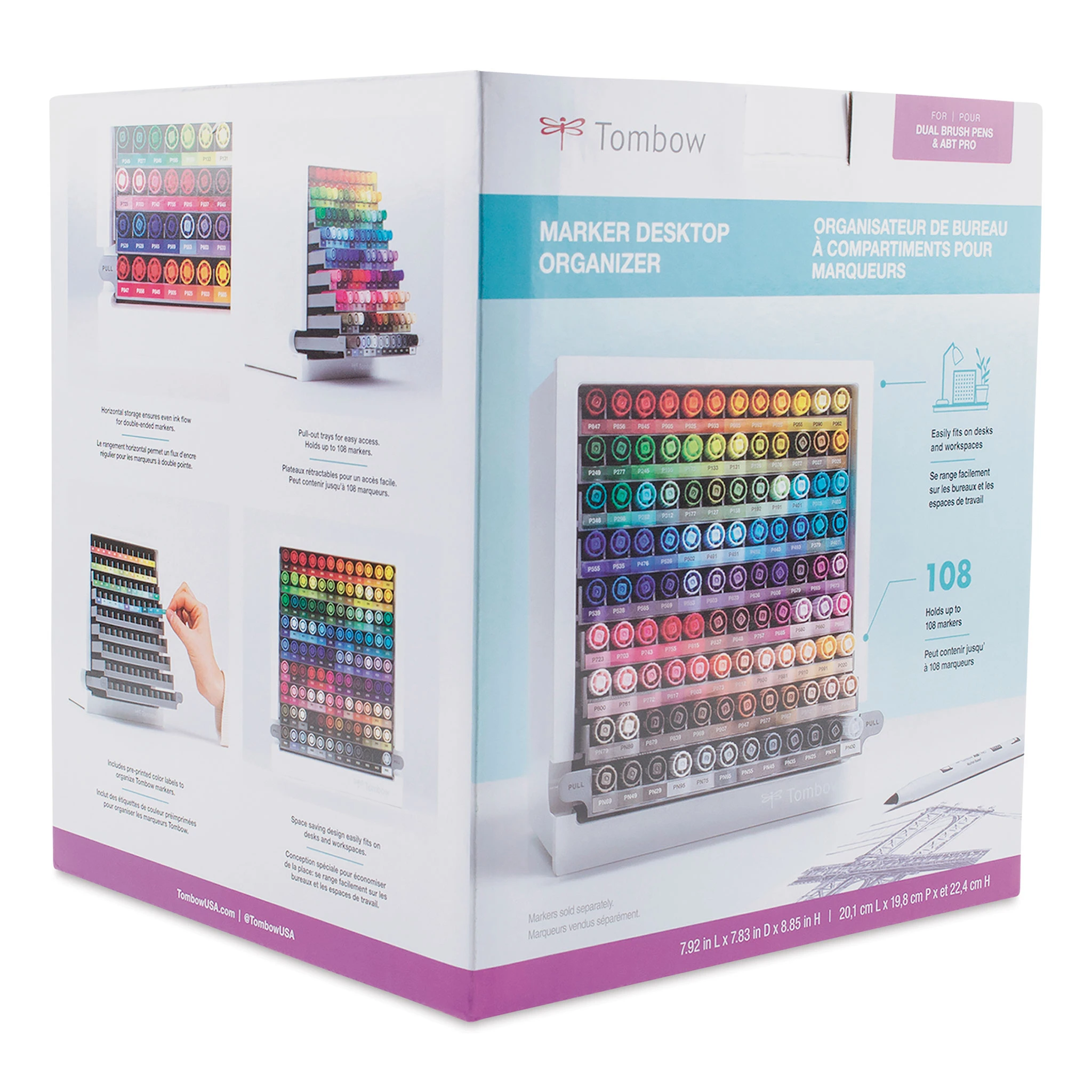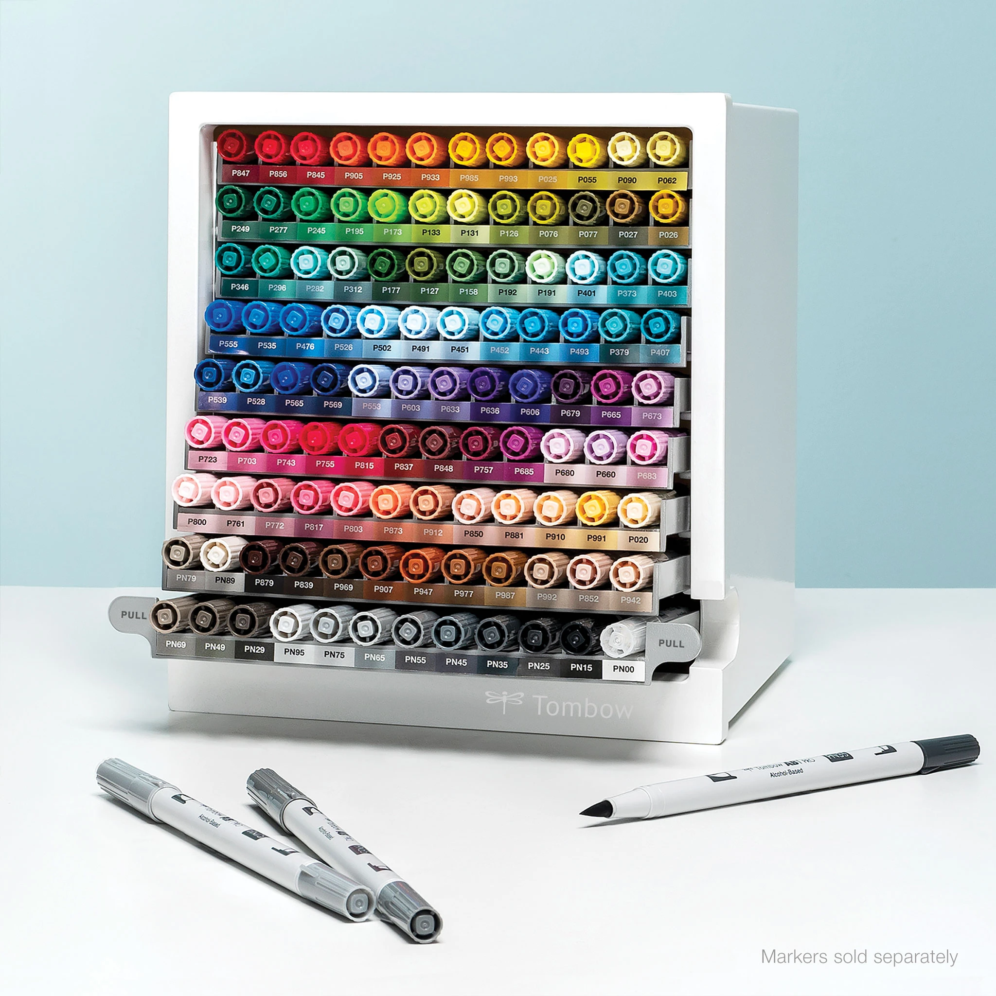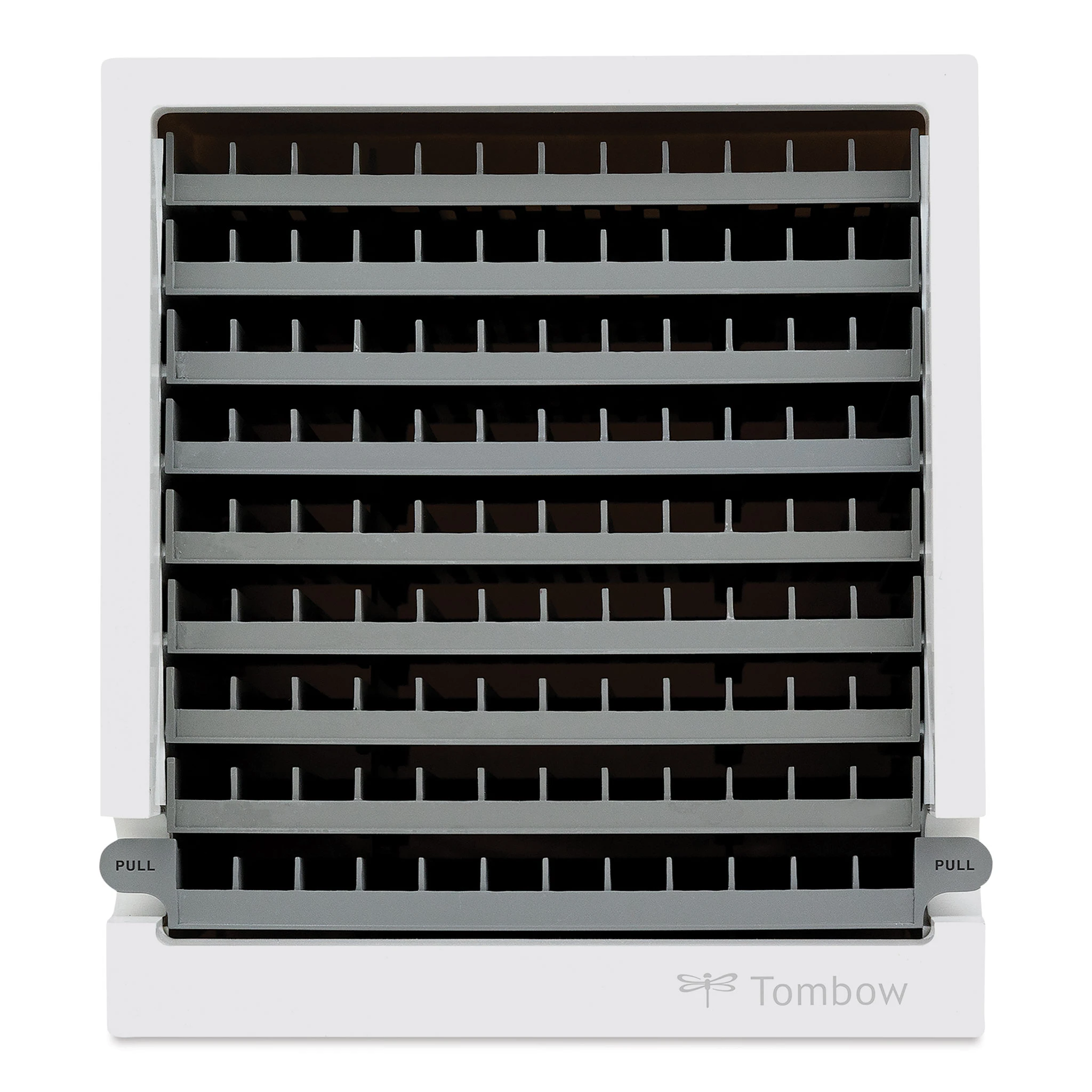 Organize and store your Tombow Markers with the Tombow Marker Desktop Organizer. This sleek, space-saving organizer easily fits on any workspace and holds up to 108 markers in a horizontal position for optimal ink flow. Nine pull-out trays contain 12 slots each that fit Tombow Dual Brush Pens and AB…