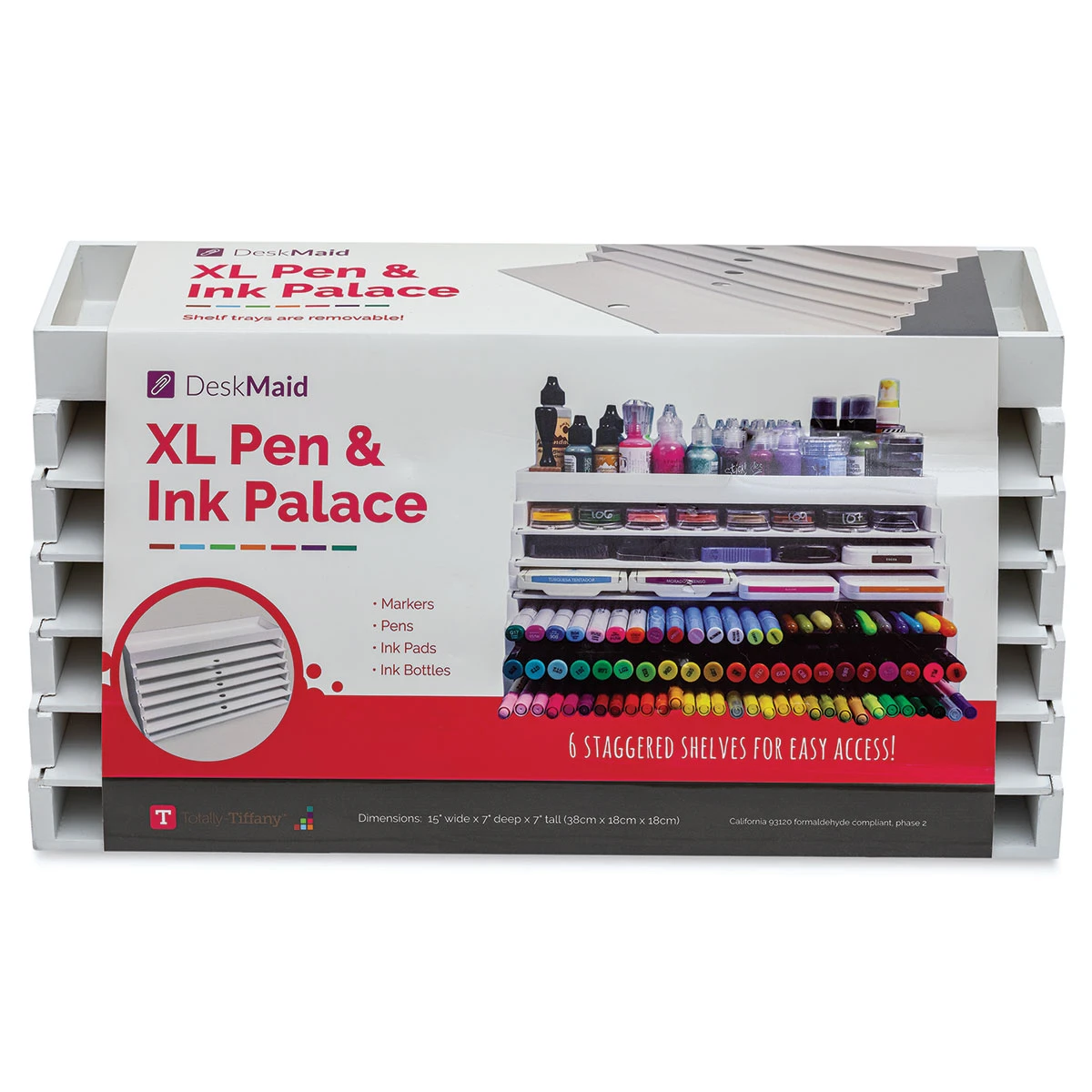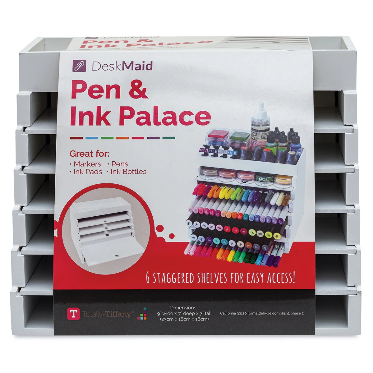 Keep markers, pencils, pens, and ink bottles organized with the Totally Tiffany Desk Maid Pen and Ink Palace. It has white wood construction for enduring quality and classic style, and its multiple shelves are staggered to maximize storage and save space. This desktop organizer comes in two sizes. …
