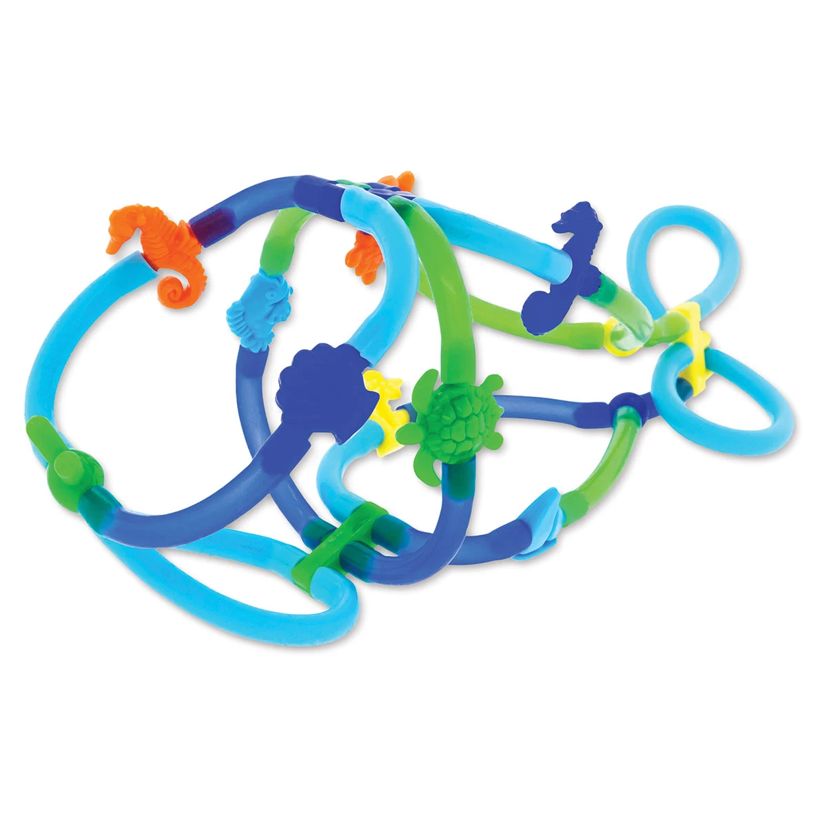 Build, construct, and design anything you can dream up with Wacky Links Sets. These sets include unique tubes and links — connect them together to turn them into bracelets, necklaces, and backpack decorations, as well as funky structures, animal shapes, and more.